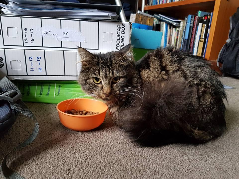 This gorgeous wee fluffy kitty has slept in our office the last two nights. Must belong to someone. We live in Karaitiana Street, Frimley.