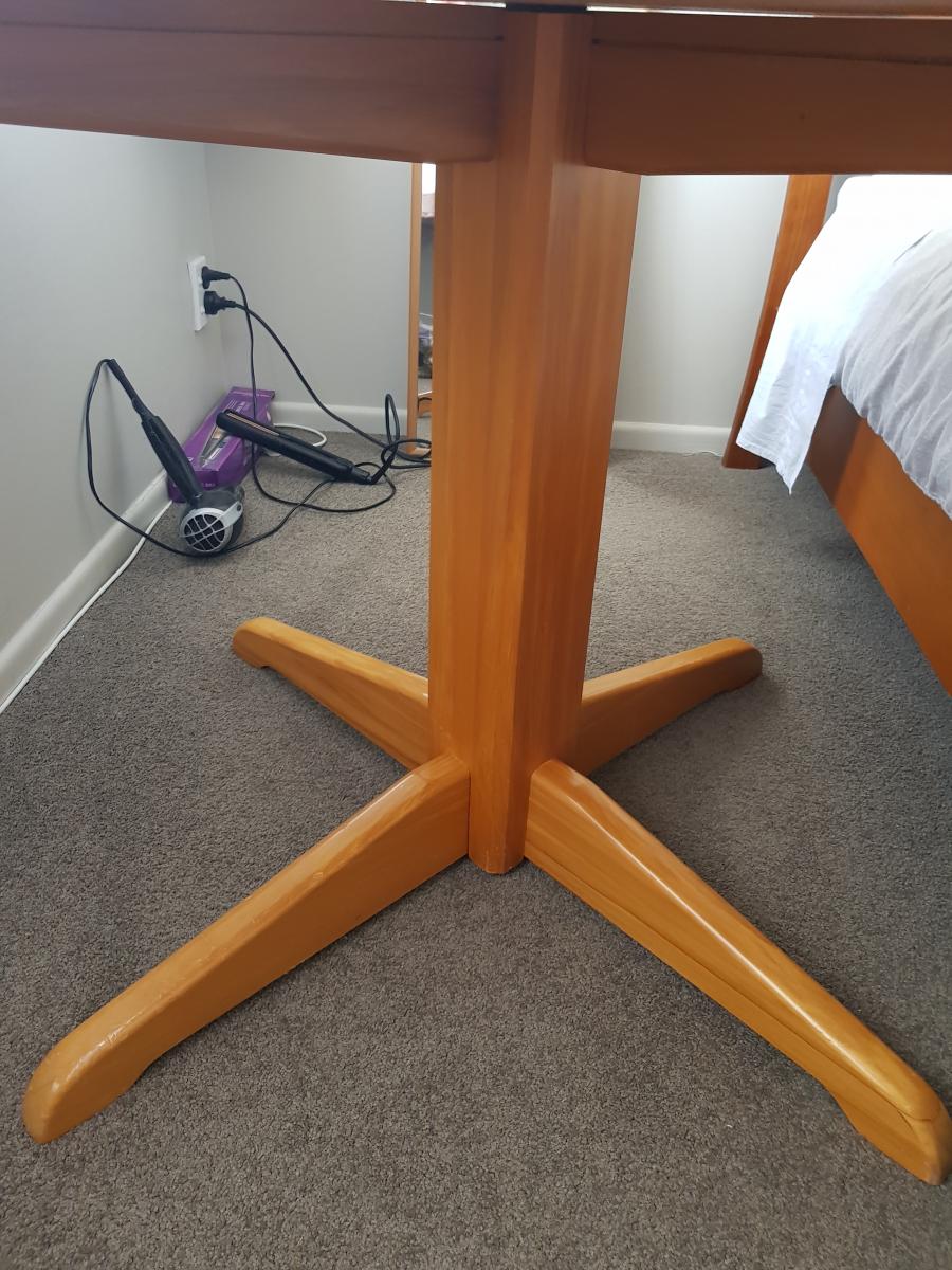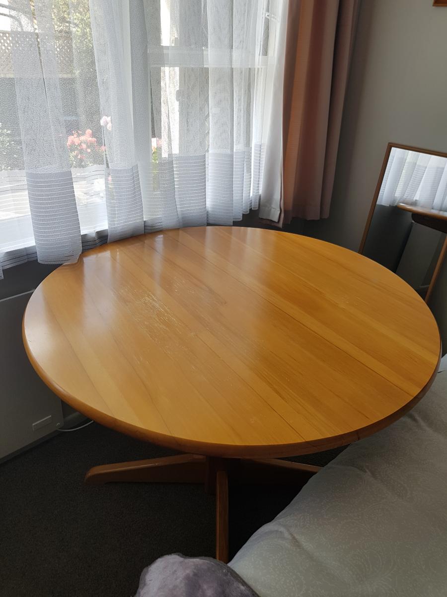 Solid Rimu dining pedestal table for sale. No scratches, just noticable where the varnish is starting to come off. Surplus to my requirements. $40. Message me if interested.