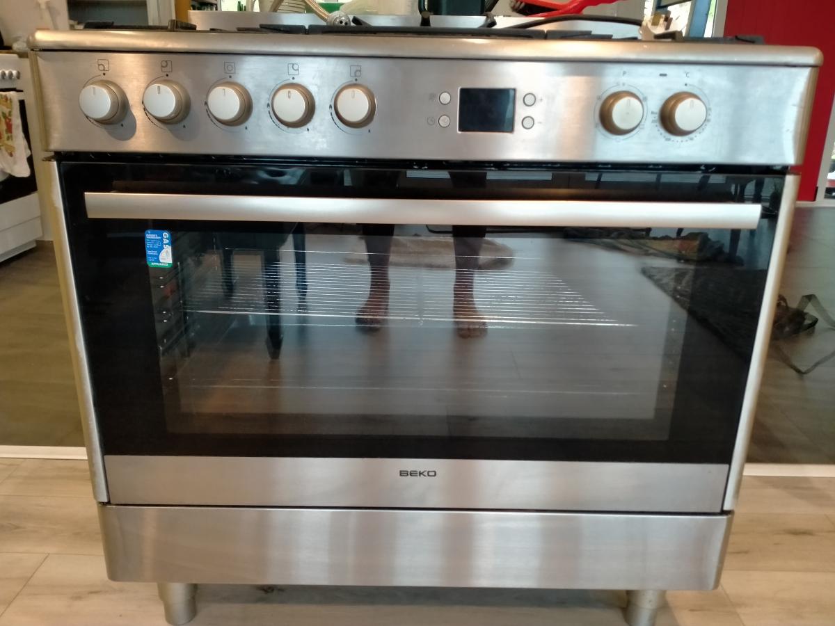 This Beko stove is 900mm wide and 900mm tall (adjustable) and 600mm deep. Has 4 standard rings and a 5th larger one in the center that has a removable Wok holder. Oven has 2 trays. I think this stove is about 14 years old but in good condition and everything works. Was in this house when I moved in… View moreThis Beko stove is 900mm wide and 900mm tall (adjustable) and 600mm deep. Has 4 standard rings and a 5th larger one in the center that has a removable Wok holder. Oven has 2 trays. I think this stove is about 14 years old but in good condition and everything works. Was in this house when I moved in but is too big for me and I don't like gas. It has a gas connector and 3 pin plug with a large bottom pin as shown in the photos. I have spent hours cleaning it but it still has some grunge in hard to reach places. You must pick-up from Opuawhanga. Please make an offer!! $300 ono Text 0284342794