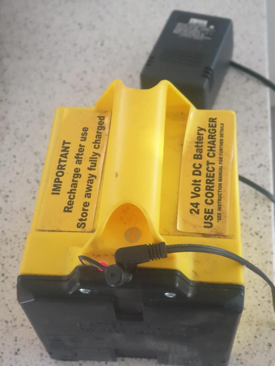 24v battery, still in working order, with charger. Hardly used. Manufactured Jan 2015. Pick up only.