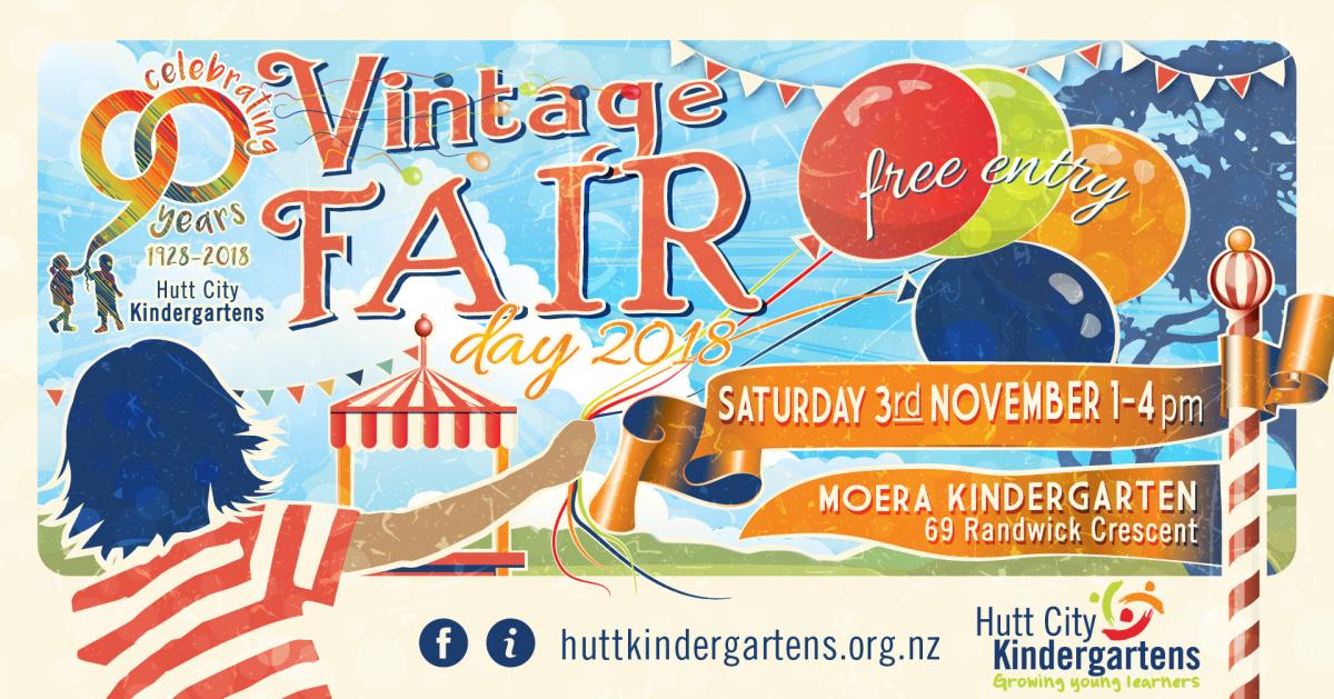 The 90th Anniversary Vintage Fair Day will be held at Moera Kindergarten on Randwick Crescent, Lower Hutt (our first kindergarten to open in 1928!)