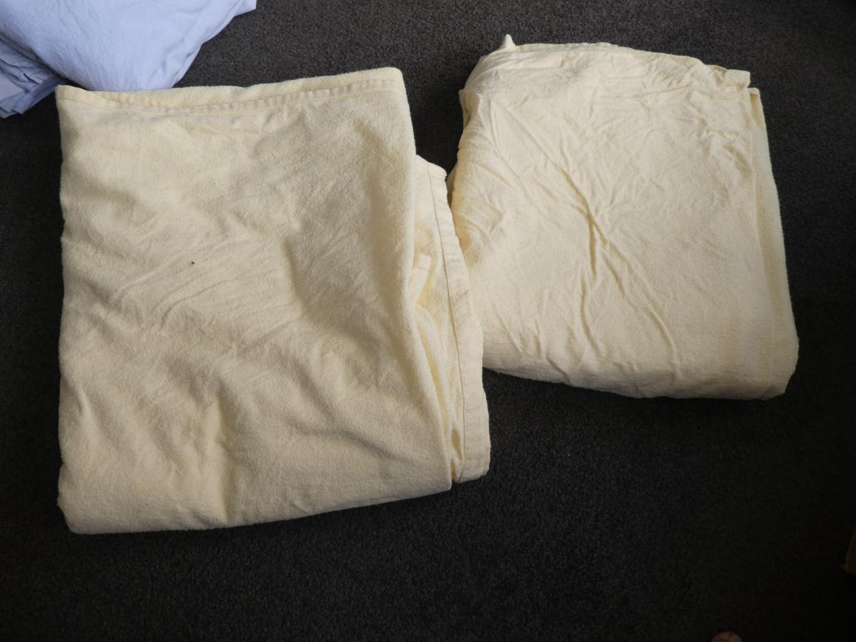 Two 100% cotton queensize sheets to keep you warm during cooler nights. Have been stored- as our home is too warm for them.