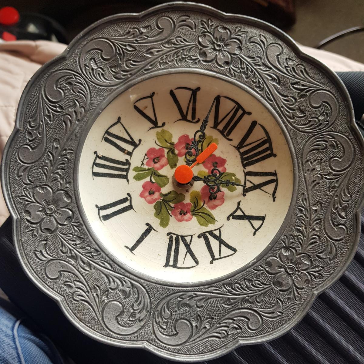 Handpainted plate clock german made with authentic 95% pewter , no damage either, pickup in petone asap
