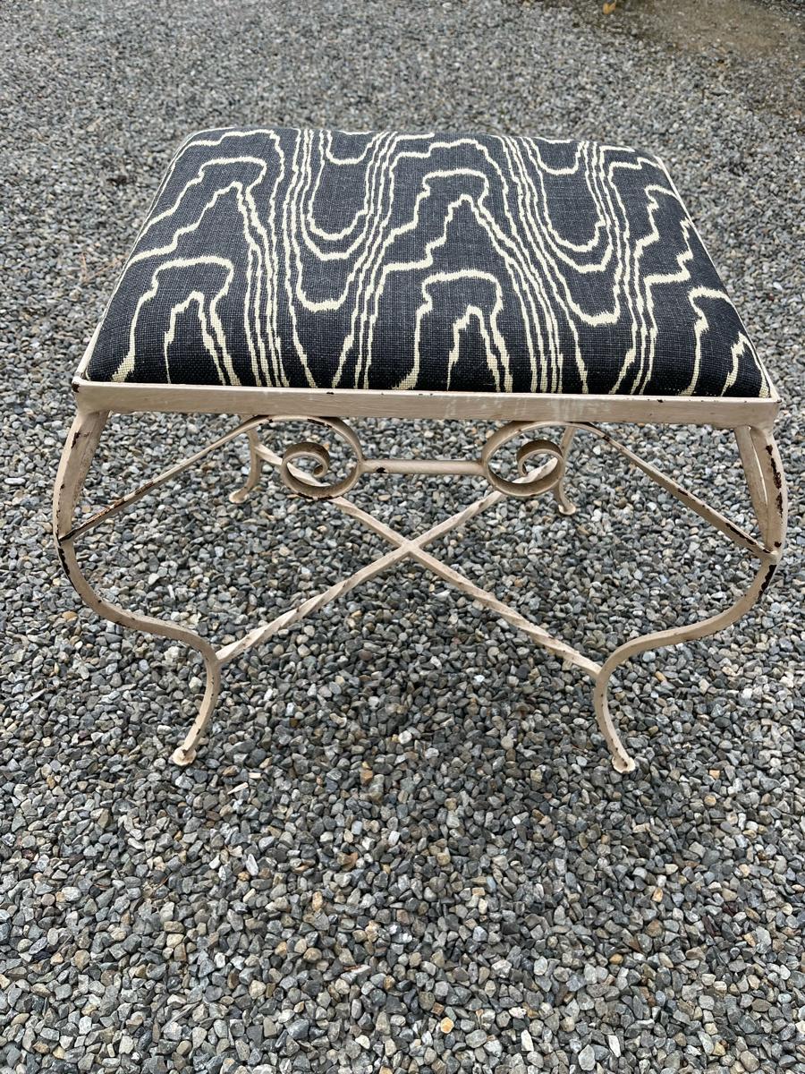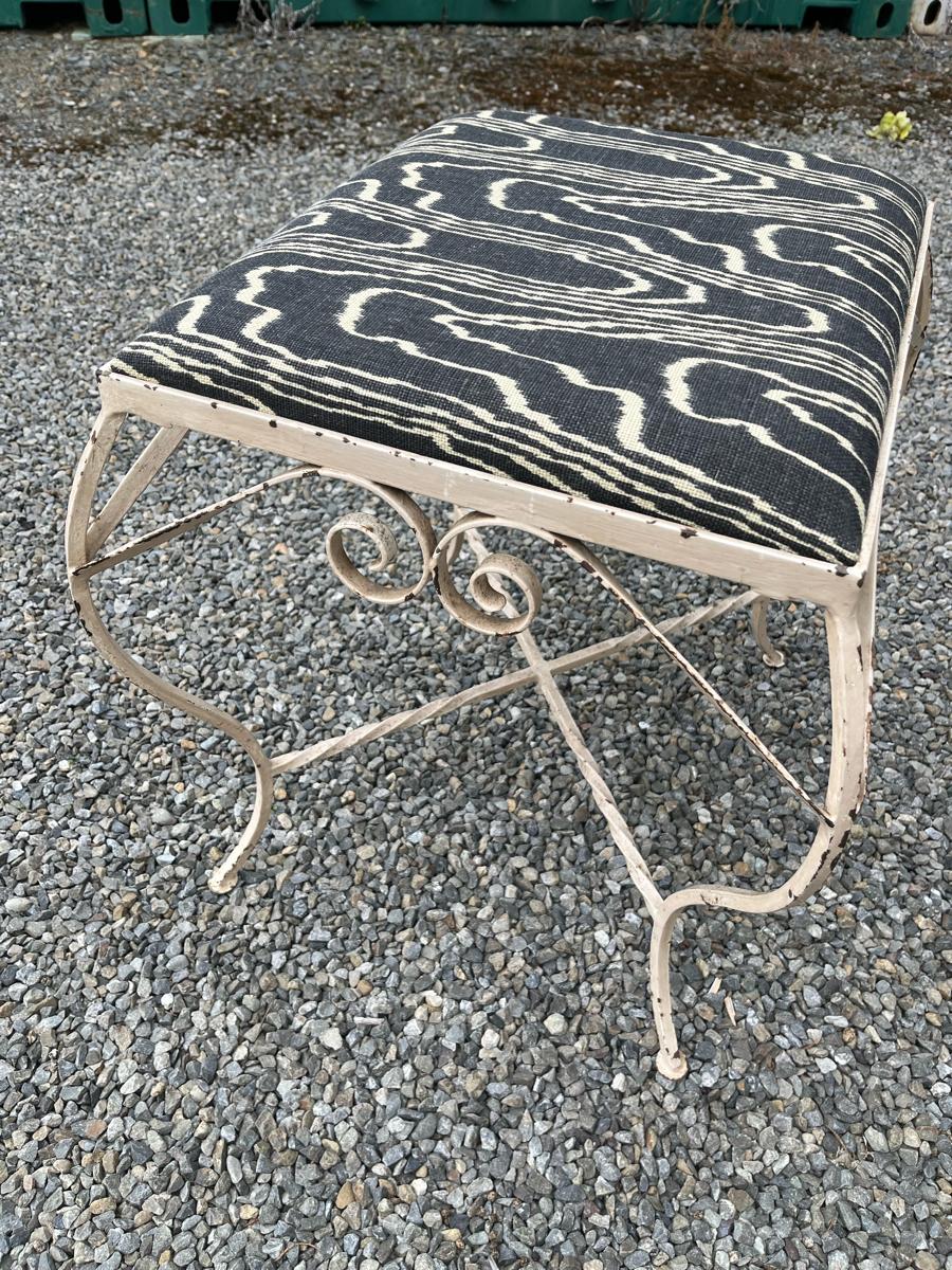 Vintage metal stool with new Kelly Wearstler fabric.