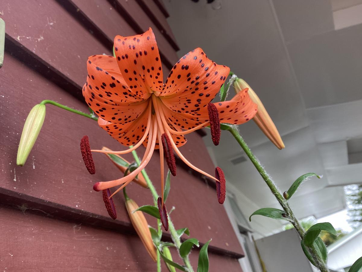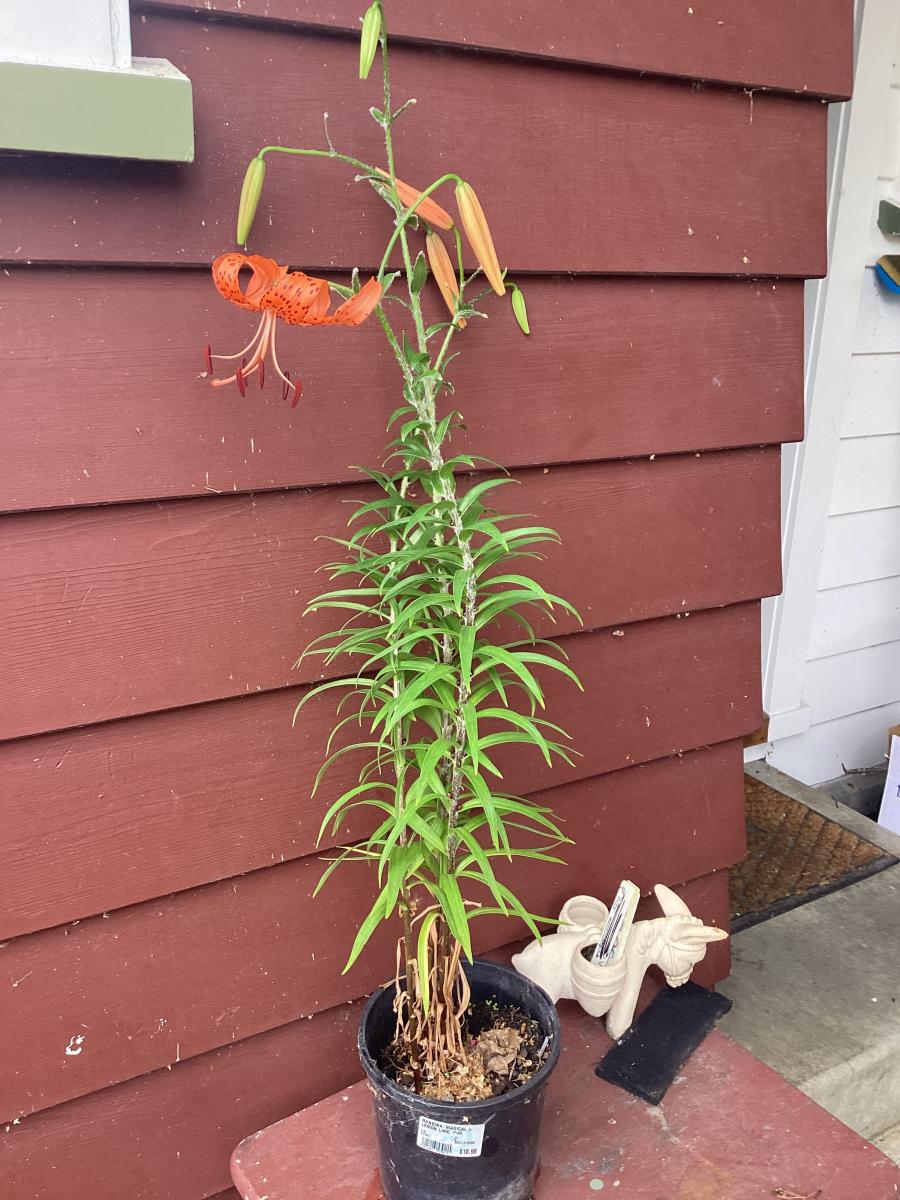 I have here a potted Tigerlily, with its first flower and lots more buds still to open.