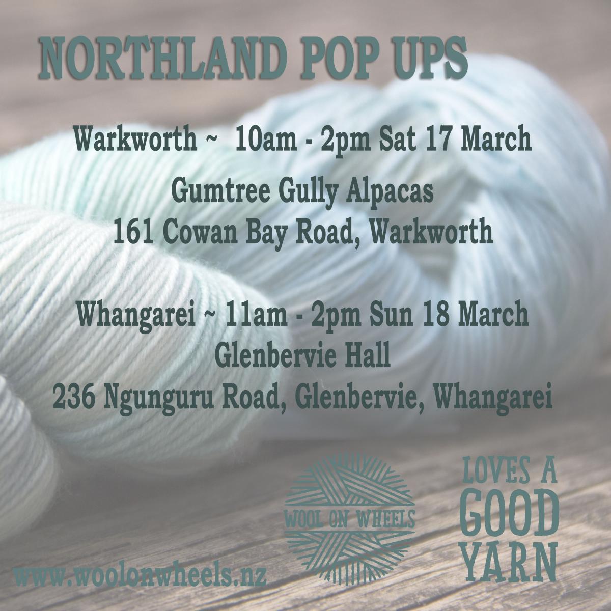 Wool on Wheels will be setting up at Gumtree Gully Alpacas just south of Warkworth, with loads of yarn, accessories, tea/cofffee and you can also feed the gorgeous alpacas :-)