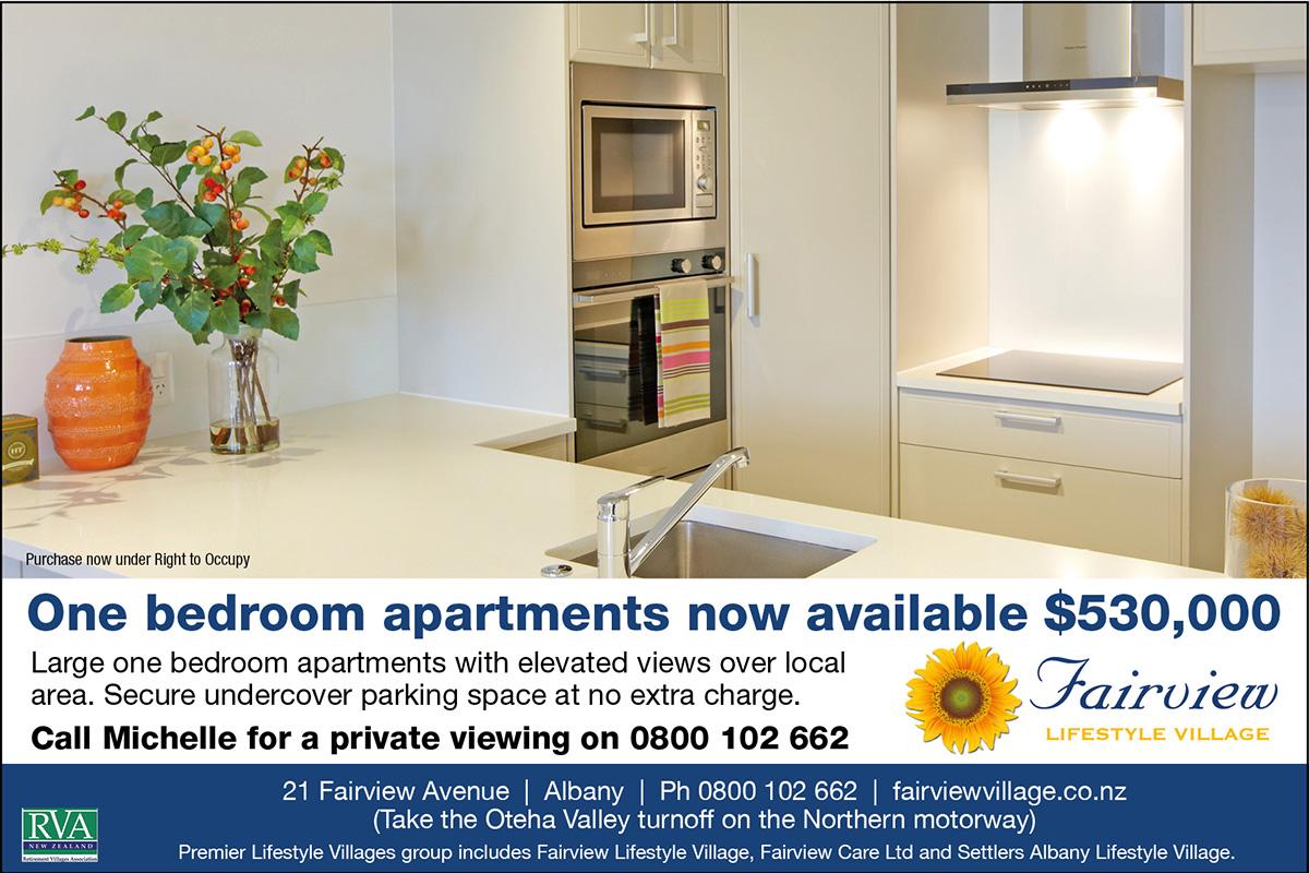 Large one bedroom apartments with elevated views over local area are available now at Fairview Lifestyle Village. Secure undercover parking space at no extra charge. Call Michelle for a private viewing on 0800 102 662. Learn more