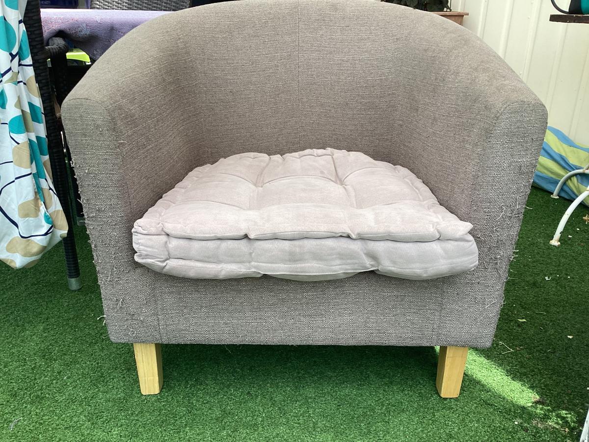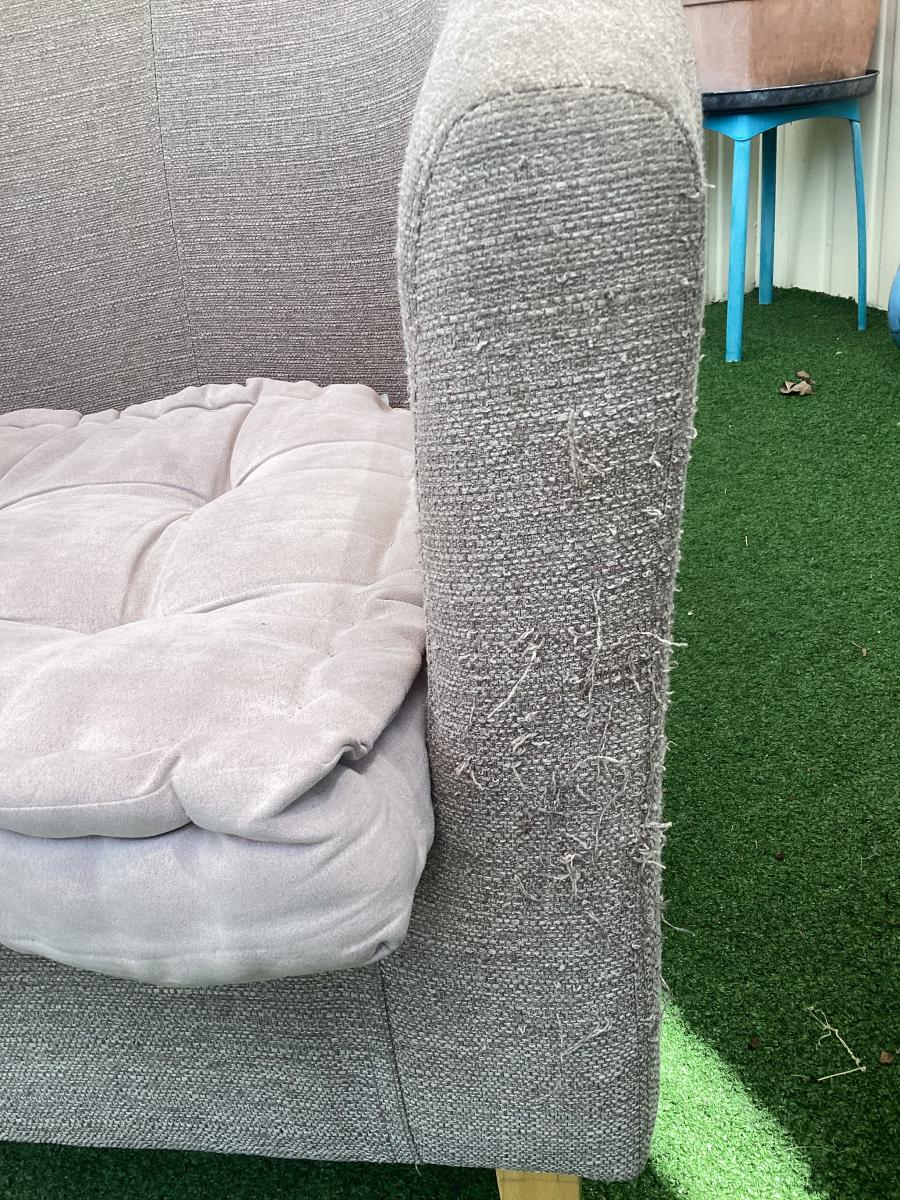 Cat has scratched the front so bought a loose cover, for it , threads need cutting off and also needs an extra cushion to boost height as have a floor cushion on at present.