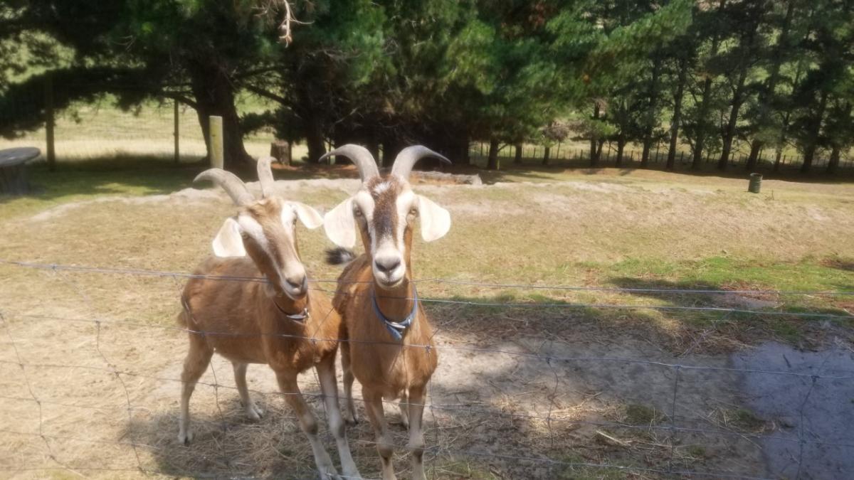 We also have 2 weathered male Goats (Nubian / Toggenburg cross), 4 years old, very friendly, hand raised. They are available to a good, caring home. Definitely NOT for meat! The Goats names are Bill and Ted. They must go together as they were raised together and are best mates.