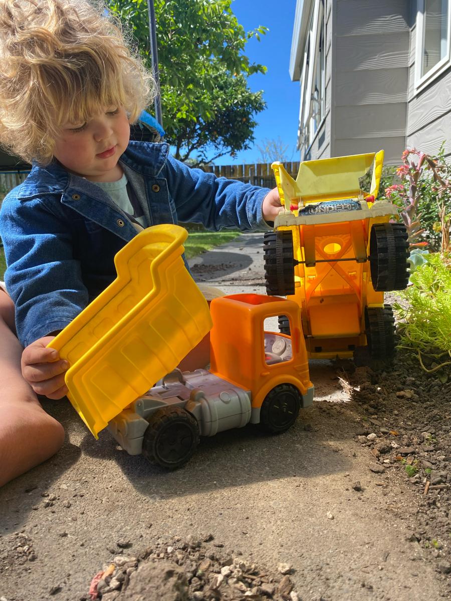 Playing in our spacious backyard