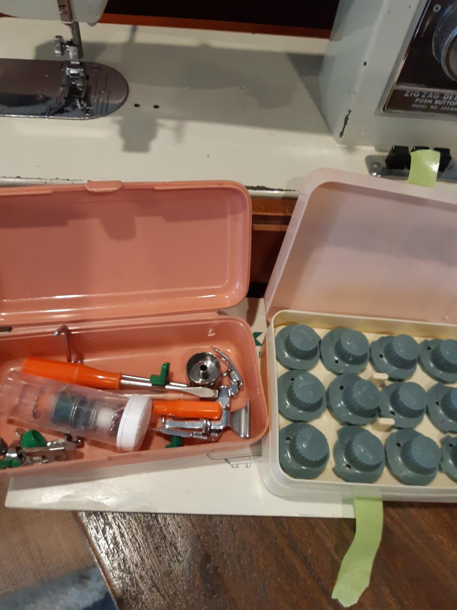 Was bought in 1970 and has been well used. Currently it is not working - maybe of interest to museum or someone who likes to tinker with repairs. This machine is very heavy which was good when sewing as it did not jump everywhere. Comes with cams for fancy stitching plus accessories. Is anyone … View moreWas bought in 1970 and has been well used. Currently it is not working - maybe of interest to museum or someone who likes to tinker with repairs. This machine is very heavy which was good when sewing as it did not jump everywhere. Comes with cams for fancy stitching plus accessories. Is anyone interested??