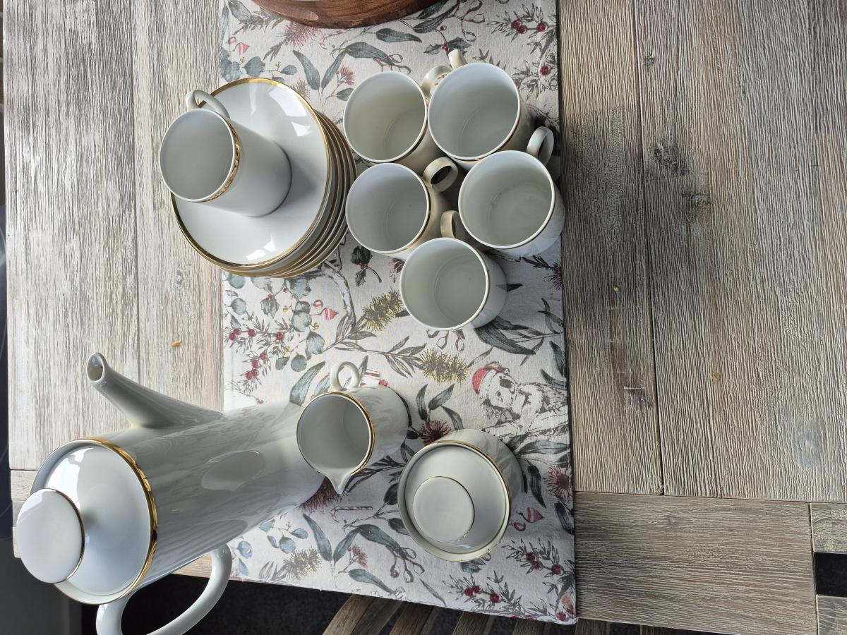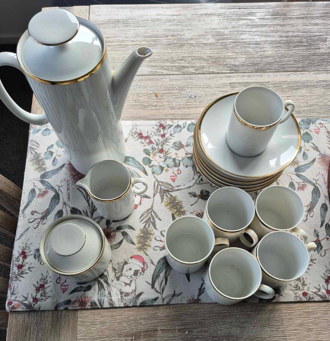 Cups, saucers ,sugar bowl , milk jug Coffee Pot