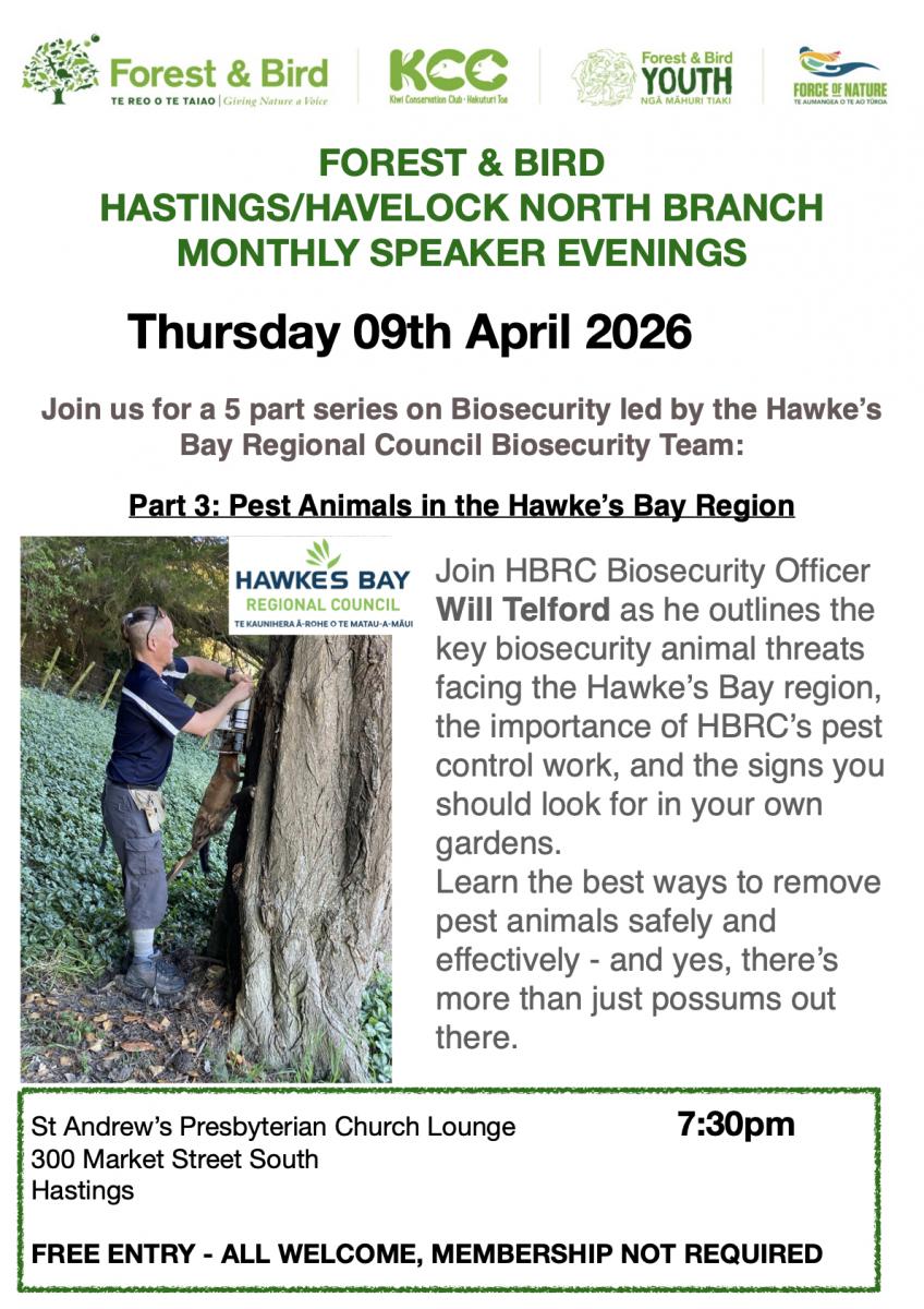 In this 3rd of 5 talks about protecting biodiversity in Hawkes Bay, everyone is welcome to an evening hosted by Forest & Bird.