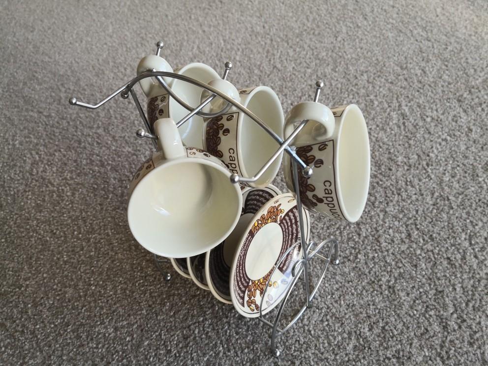 Stands 19.5cm high (with cups) x 8cm diameter base.