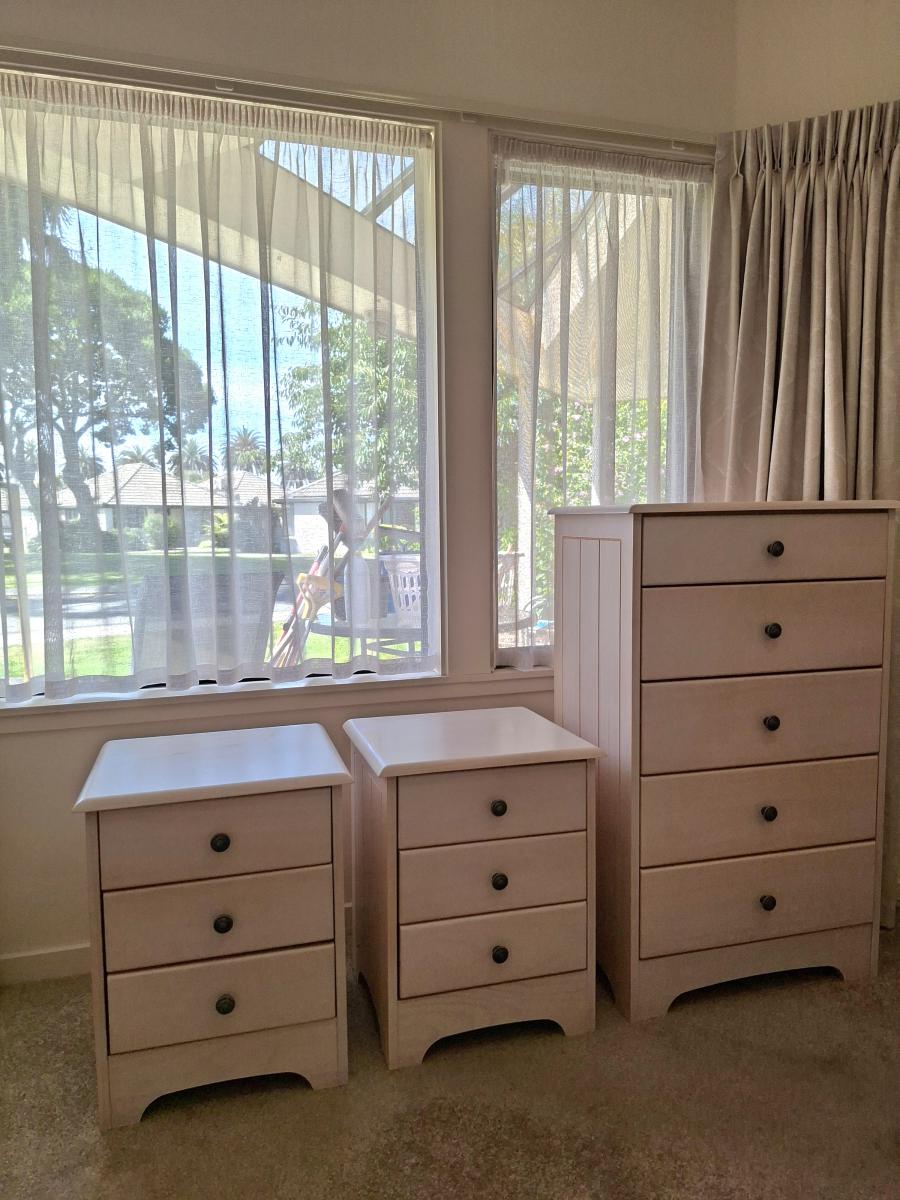 2 bedside tables (3 drawers each) and 2 chests of drawers (5 Drawers each).