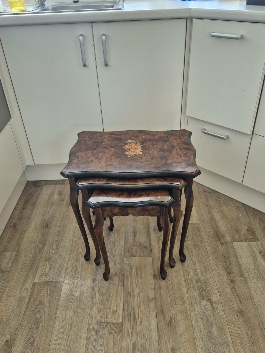 One of the tables (smallest) has a mark on the corner. The other 2 are fine.