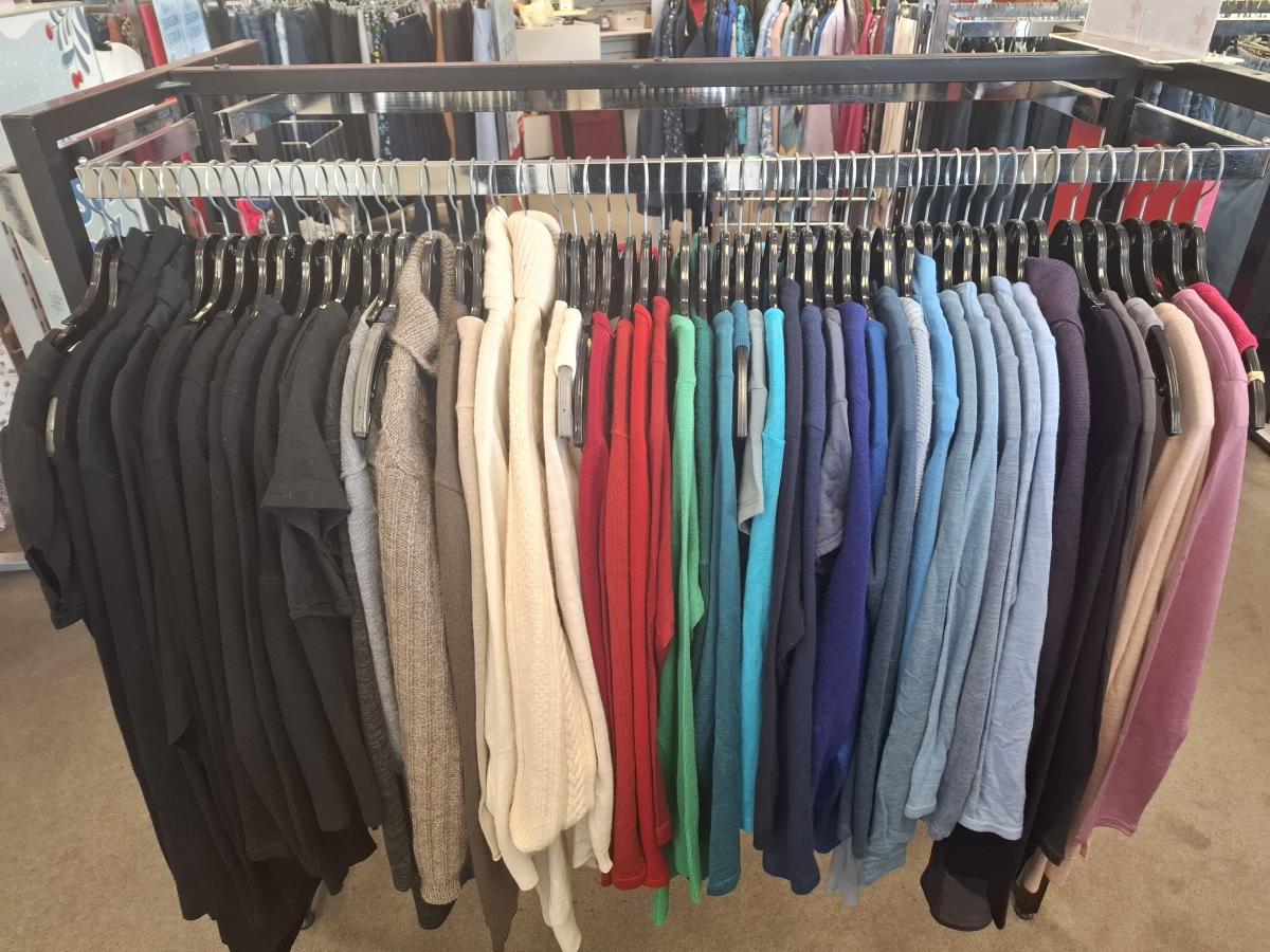 The volunteers have been busy and we have an impressive selection of winter coats, scarves and a rainbow of wool and merino to help with the layering.