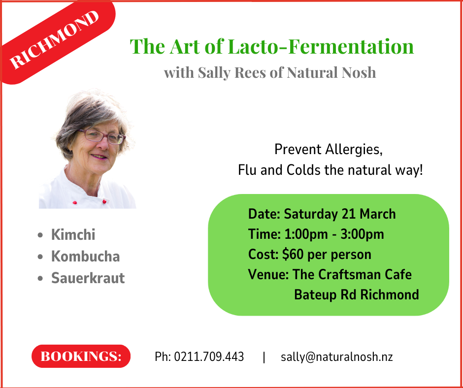 Sally Rees is a passionate advocate of Fermentation and its amazing benefits for the digestion. She will explain how to avoid the pitfalls and give you tips and tricks to make a successful brew every time. You will leave inspired to get started as soon as you get home.