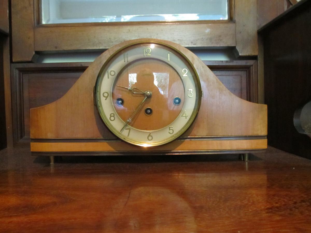 This clock used to go beautifully, but has been in storage on and off for years. The Brass face surround is loose, but the wee tacts are still there so could be easily fixed.