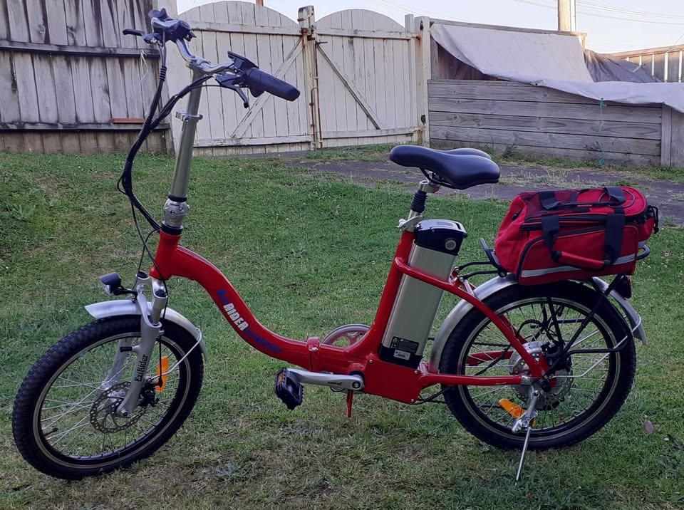 EzyRider Cruiser EBike. Company said it's really popular with the caravanning community. Ezirider Cruiser Folding EBike. Bought in September 2025 for $1500. Ridden once. 48km on clock. Circumstances have changed for me. Comes with an awesome expanding bag on carrier. Warranty for 2 years.