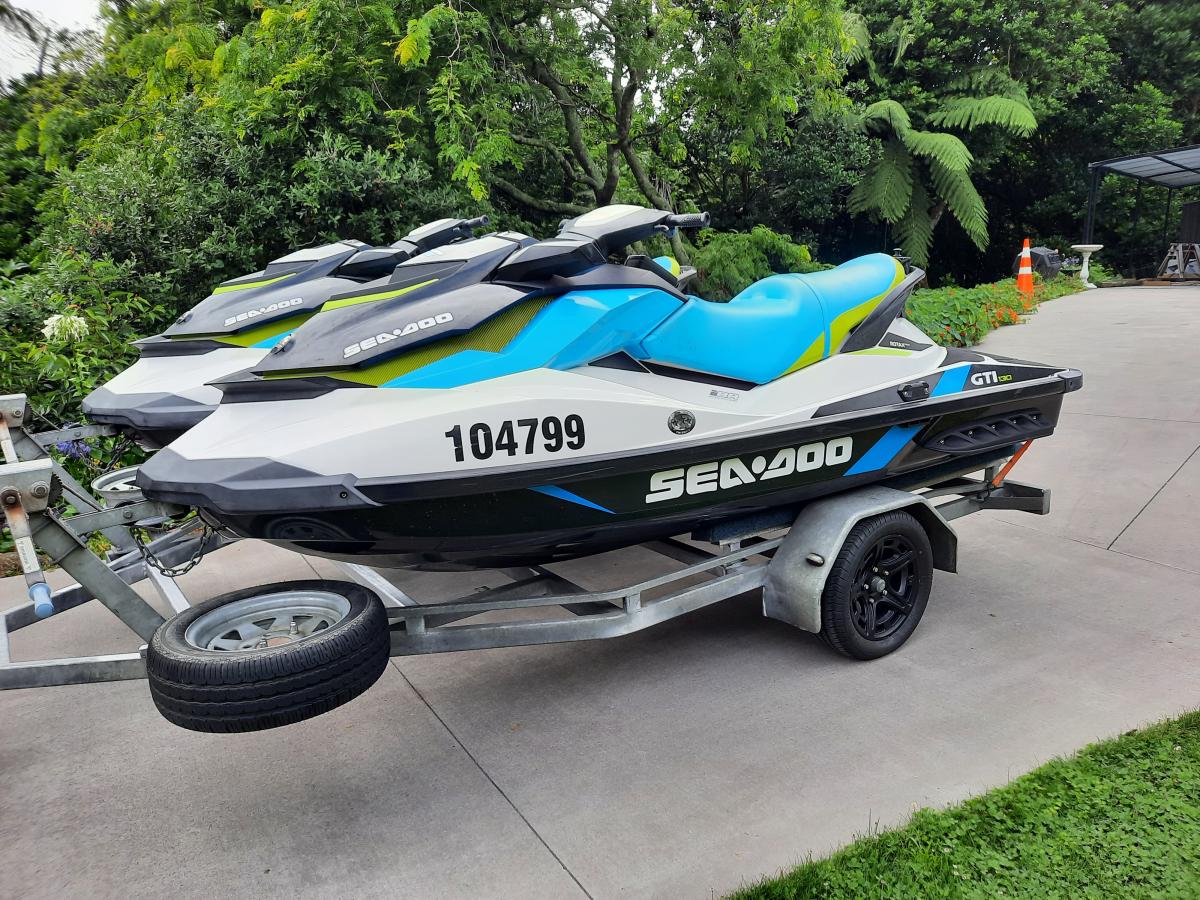 2 Seadoo Jetskis on tandem trailer with new tyres, just serviced, ready for summer fun. 125 & 141 hours. Heaps of power if you want it, Includes Dometic 43litre fishing chilli bin with mounting bracket and rod holders, life jackets, factory road covers, anchors and more! $24000 ono