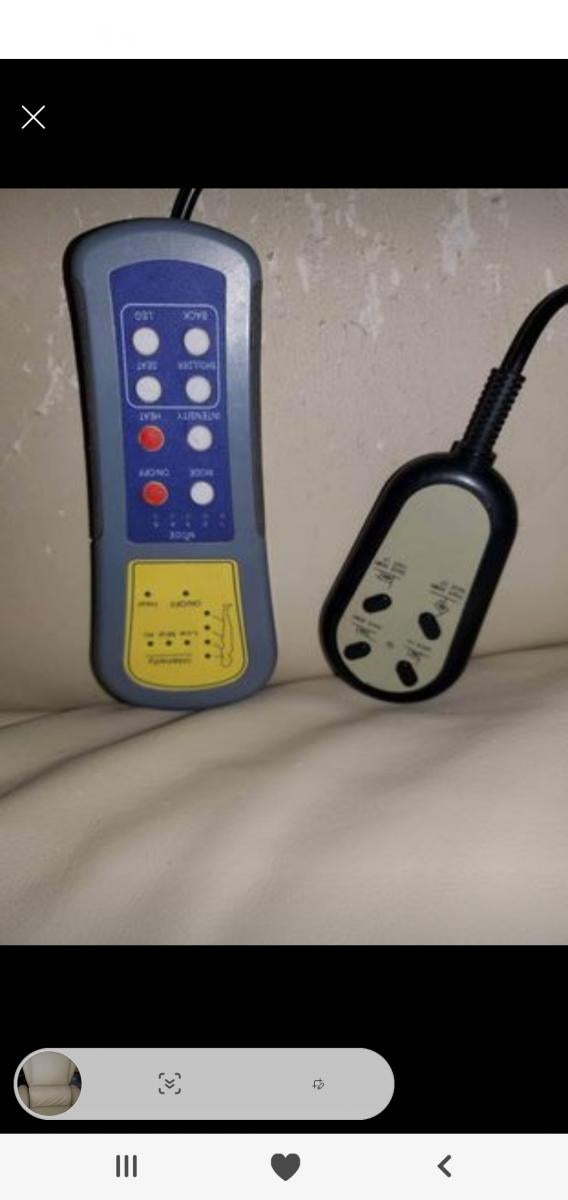 This chair has multifunctions please see the remotes photo.. Works great the only thing that ruins the chair is the peeling however we used a seat cover so it looked great. Feel free to make an offer we may consider.