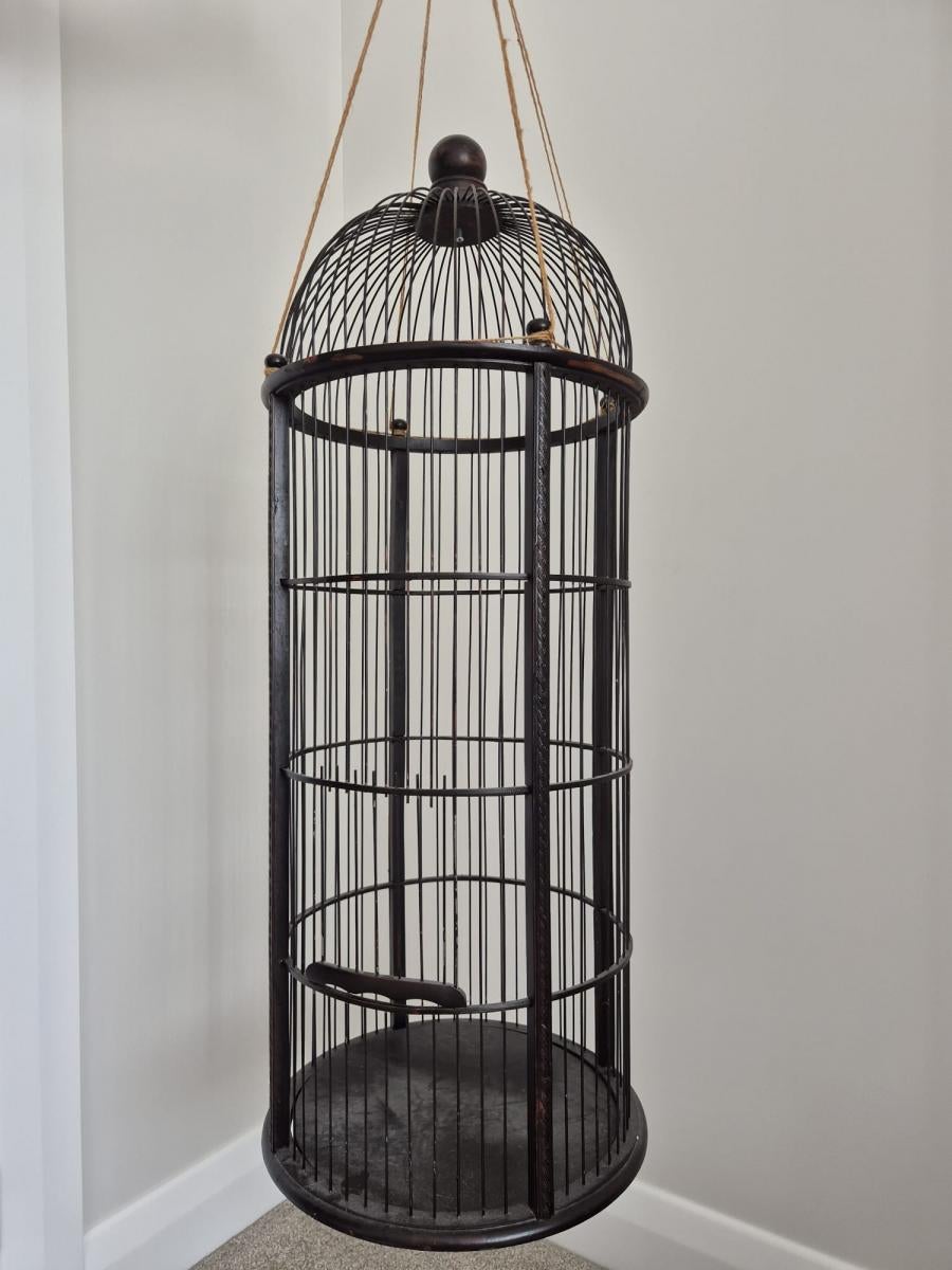 Large metal & timber birdcage with opening door. Can also be opened at base. 900mm high.