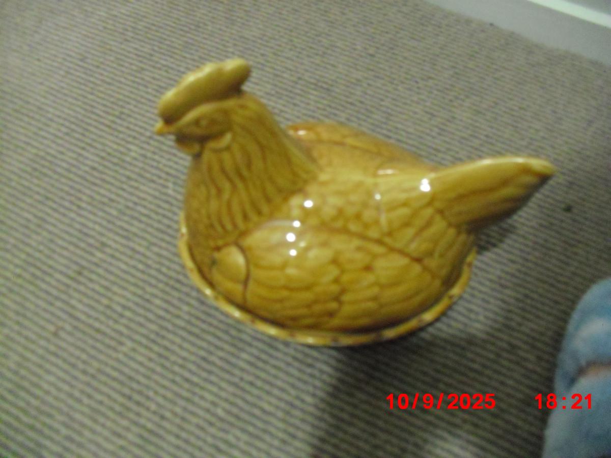 An old ceramic mother hen egg storage in excellent condition. No longer wanted. Originally purchased in the UK.