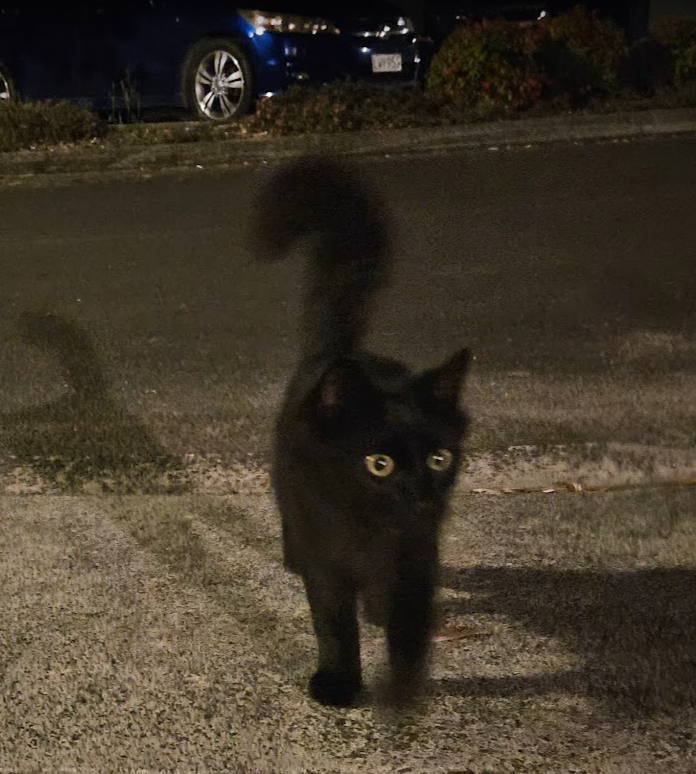 Hi there. A little black young cat (kitten) is hanging out around our house. We are in Dalton Drive, backing on to the reserve. Can it be yours? It 7.30pm now. You can contact me up to 11pm or tomorrow. Elly 027 371 8720