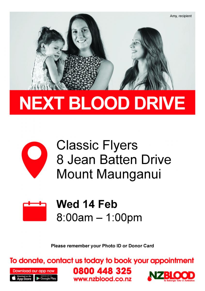 Don't miss your chance to Save a Life! Head along to Classic Flyers on Wednesday 14th February between 8am and 1pm to give blood.