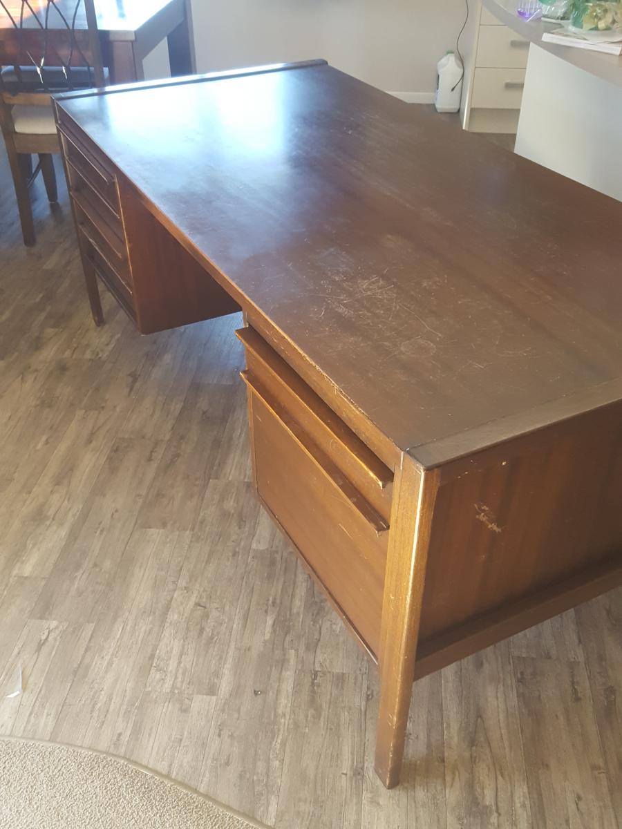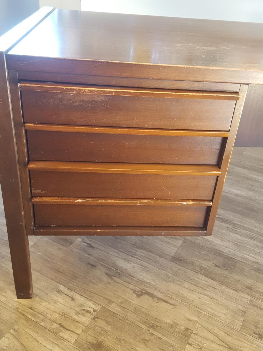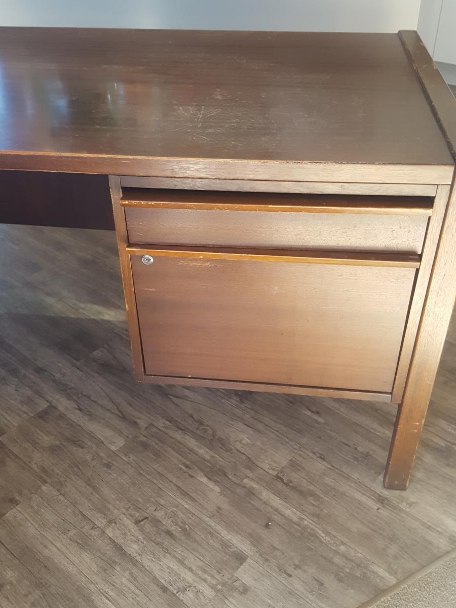 Solid (very) pre-loved wooden office desk (187x86x72cm). In ok condition. One draw is glued together. Obvious scratches and marks - hence the low price. Looking for a quick sale.