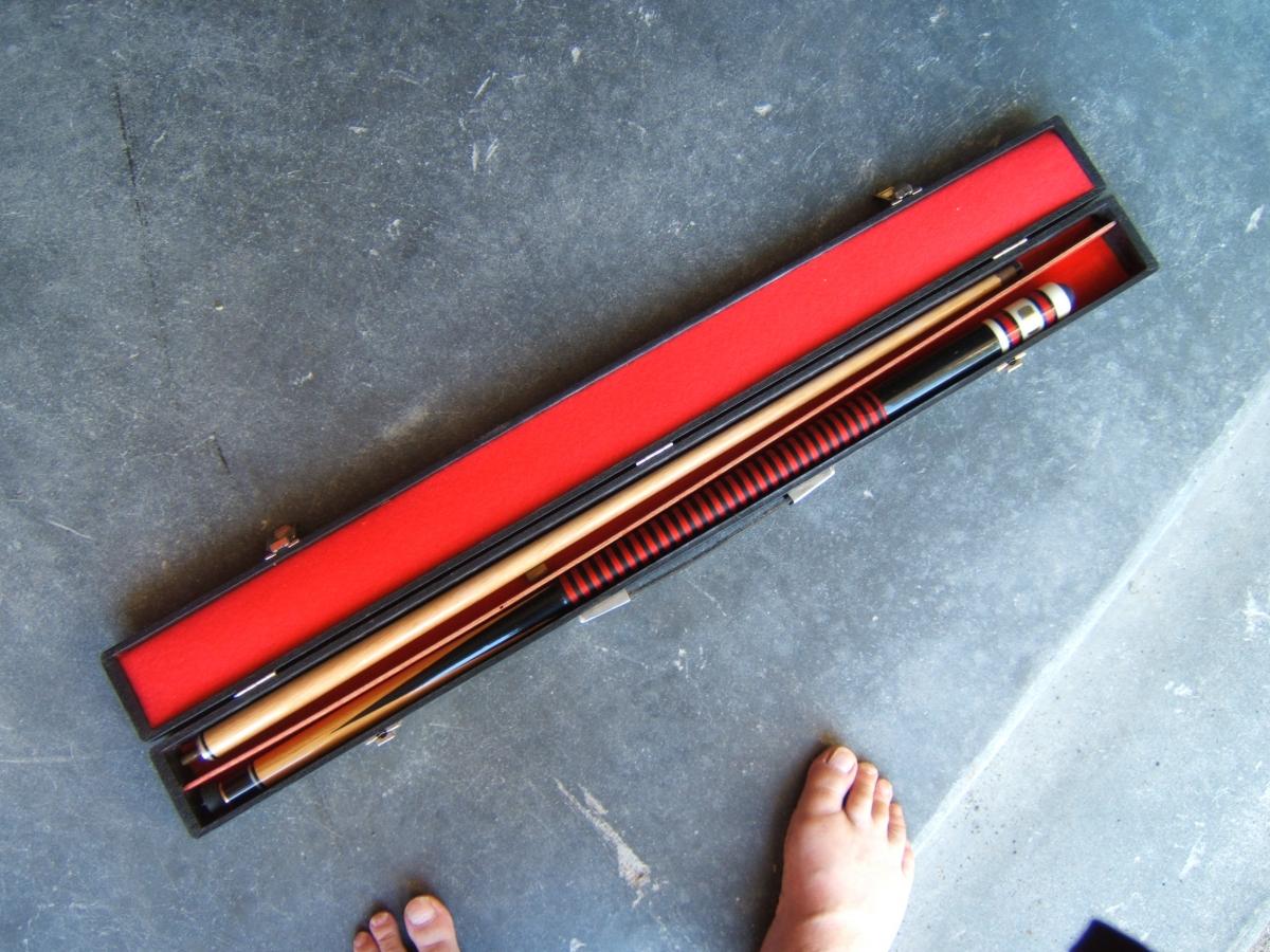 2 piece Billiards / Snooker cue in perfect condition, Riley make, spare rubber and brass tip, in case.