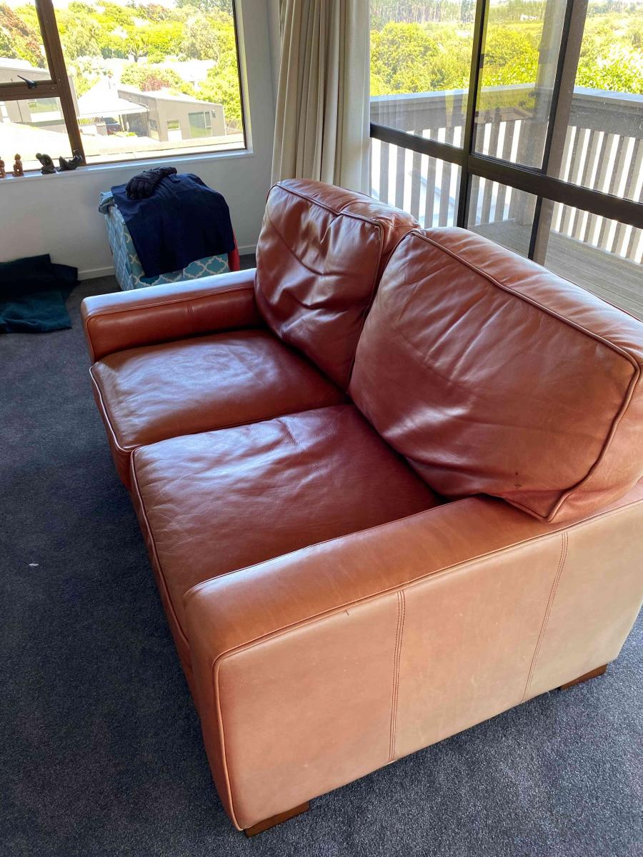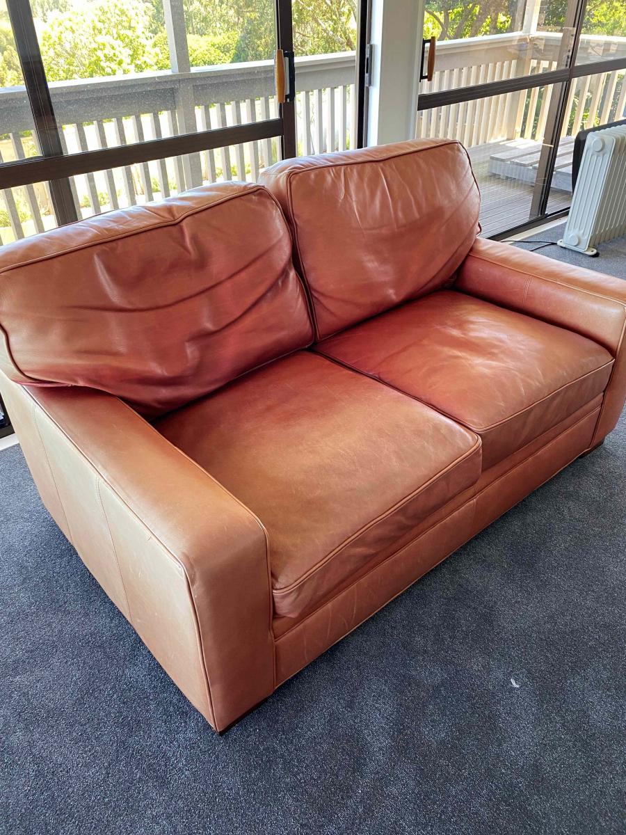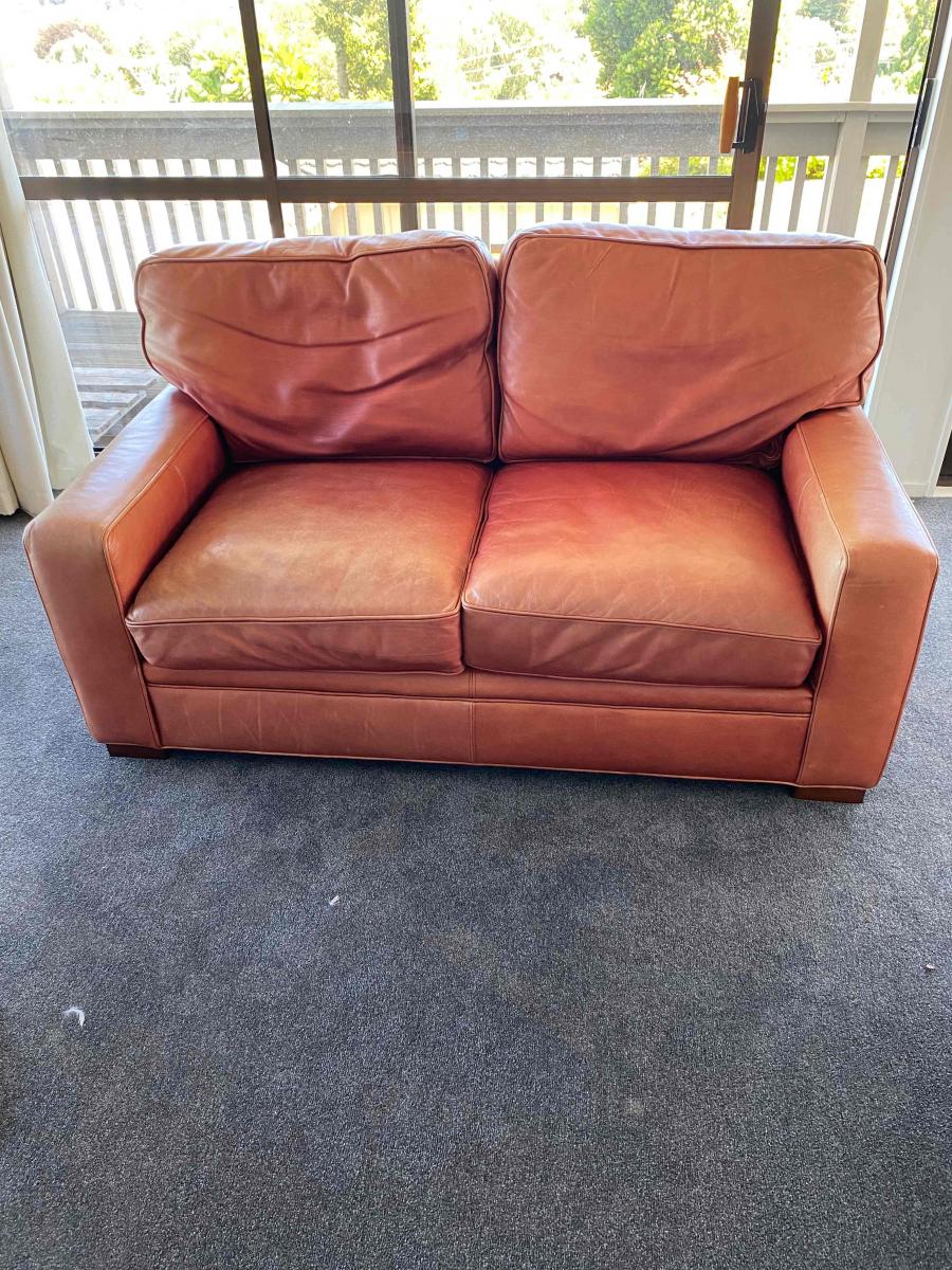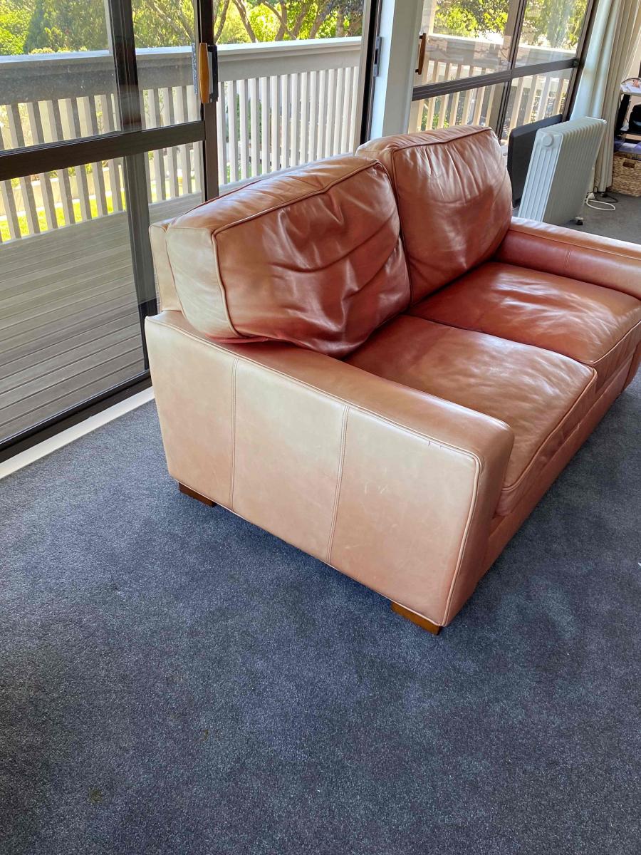 Extremely good quality Rochester 2 seater Brighton Red Caly leather sofa. Purchased from Harvey Norman (2013). This is part of a 3 & 2 lounge suite, which can be purchased together. Really good quality, solid, durable and extremely comfortable. This is in excellent condition for its age, but it… View moreExtremely good quality Rochester 2 seater Brighton Red Caly leather sofa. Purchased from Harvey Norman (2013). This is part of a 3 & 2 lounge suite, which can be purchased together. Really good quality, solid, durable and extremely comfortable. This is in excellent condition for its age, but it does have notable sun fading, so the price reflects that. It would be ideal where you have the rear facing a window or door, then the fading is minimalised.