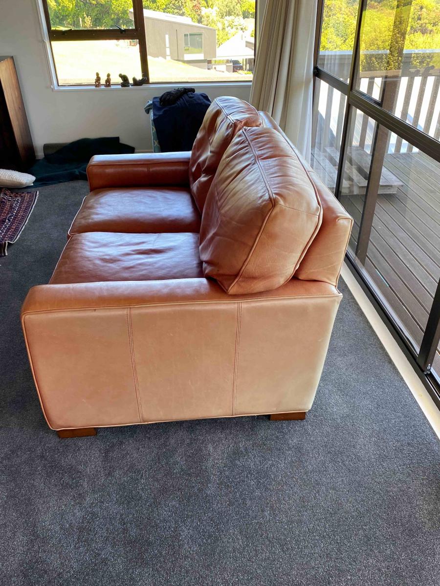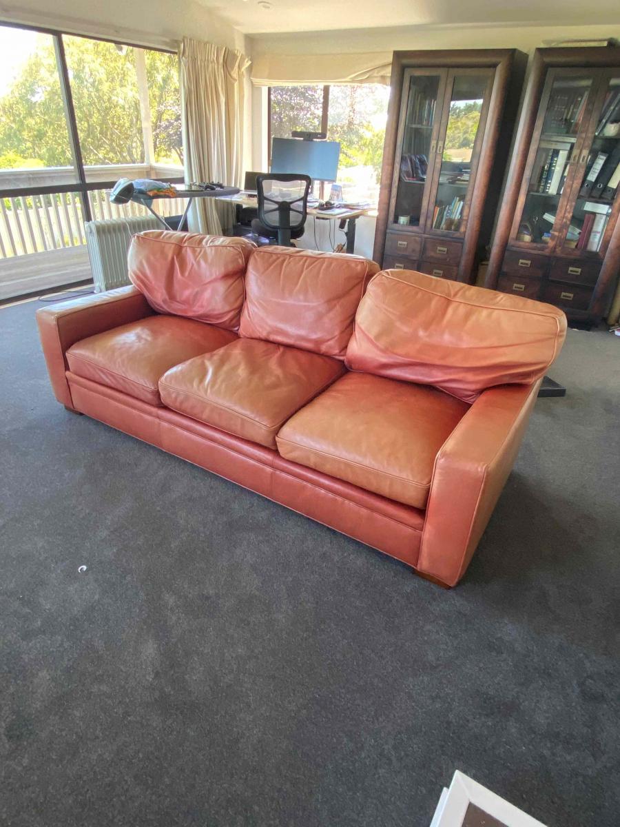 Extremely good quality Rochester 3 seater Brighton Red Caly leather sofa. Purchased from Harvey Norman (2013). This is part of a 3 & 2 lounge suite. Really good quality, solid, durable and extremely comfortable. This is in excellent condition for its age, but it does have some sun fading, so … View moreExtremely good quality Rochester 3 seater Brighton Red Caly leather sofa. Purchased from Harvey Norman (2013). This is part of a 3 & 2 lounge suite. Really good quality, solid, durable and extremely comfortable. This is in excellent condition for its age, but it does have some sun fading, so the price reflects that. It would be ideal where you have the rear facing a window or door, then the fading is minimalised. Would probably require a trailer of van for transport.