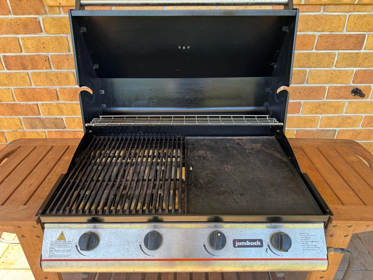 Our trusty Jumbuck Endeavour 4-burner hooded barbeque is about 10 years old and, while we’ve kept it ready for use over the last two summers, we simply haven’t been motivated to cook on it, so it’s now looking for a new owner!