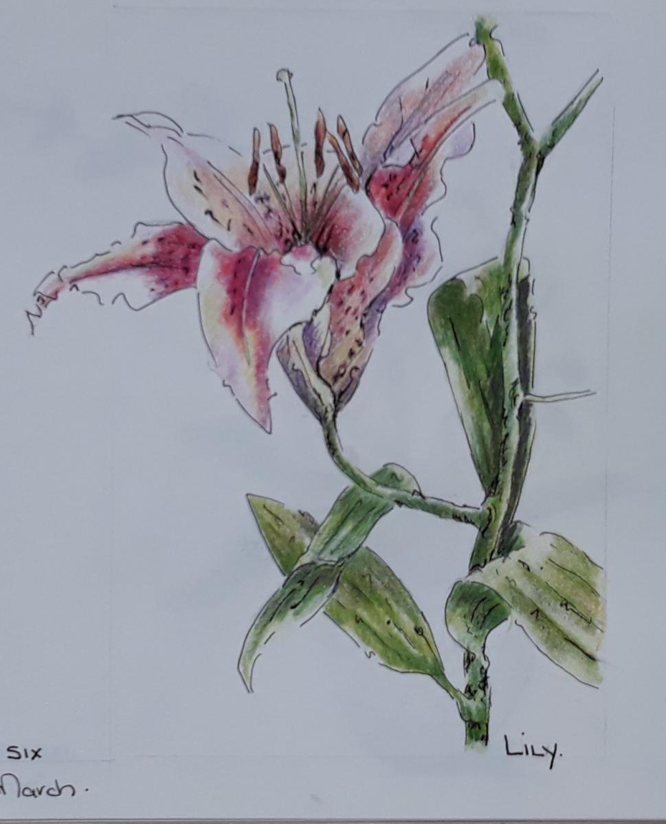 Student pen and coloured pencil drawing. You can learn how to do this in my new beginners class starting up on the 3rd Feb at 1pm.