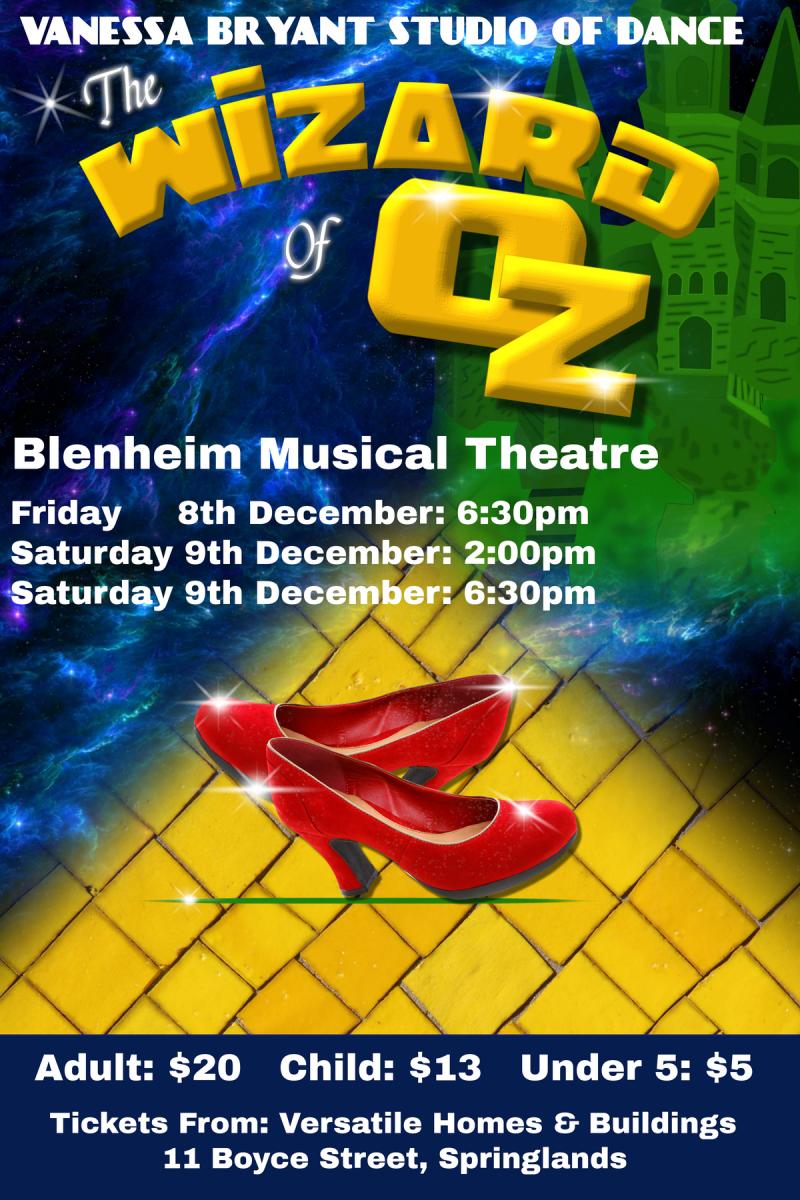 Vanessa Bryant Studio of Dance presents The Wizard of Oz. A fantastic show for all ages featuring Tap, Jazz, Contemporary and Lyrical dance styles. Tickets available from Versatile Homes & Buildings, Boyce St, Springlands.