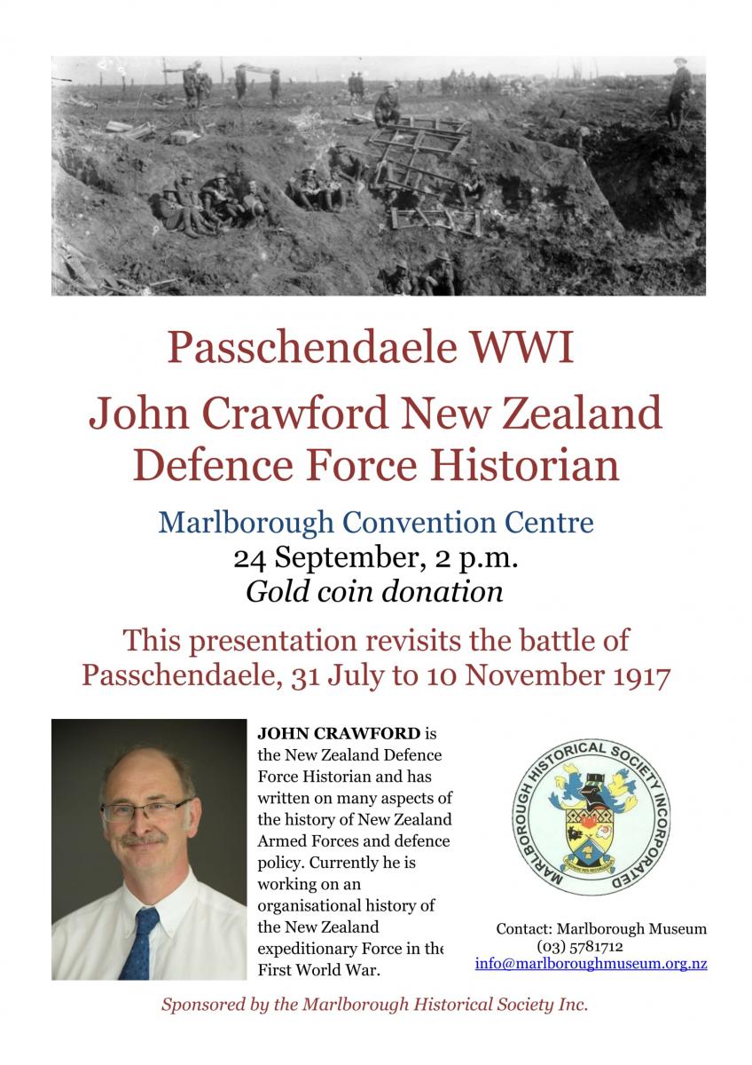 Join us at the Marlborough Convention Centre at 2 p.m. on the 24th of September to hear John Crawford revisit the battle of Passchendaele.