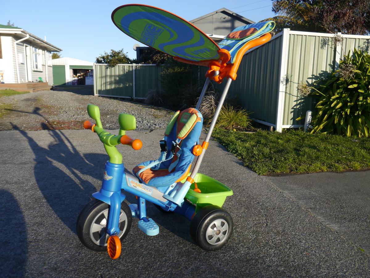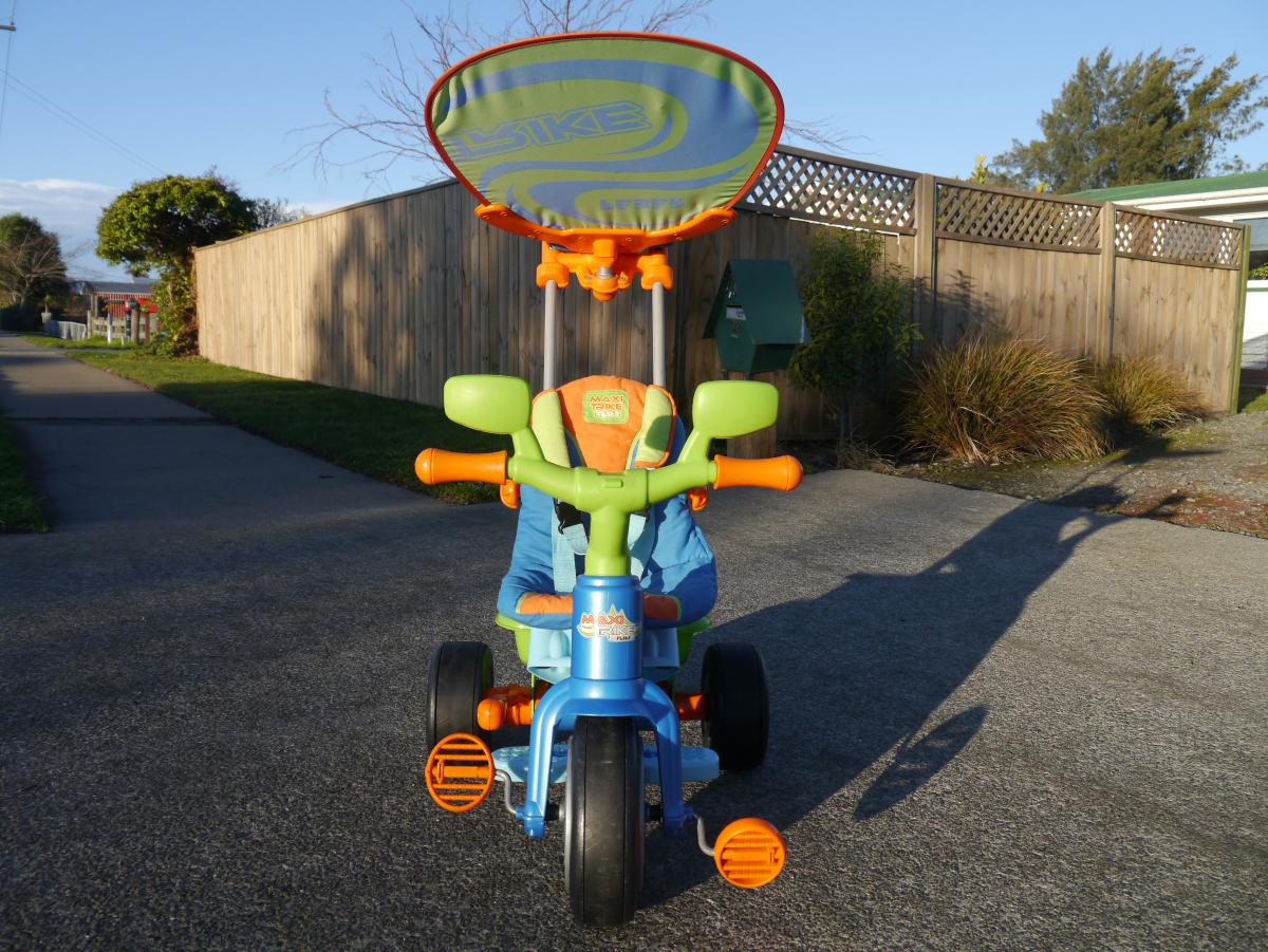 The baby deluxe trike is a safe trike for the very youngest child. The rigid harness restricts the handlebars for safe use.