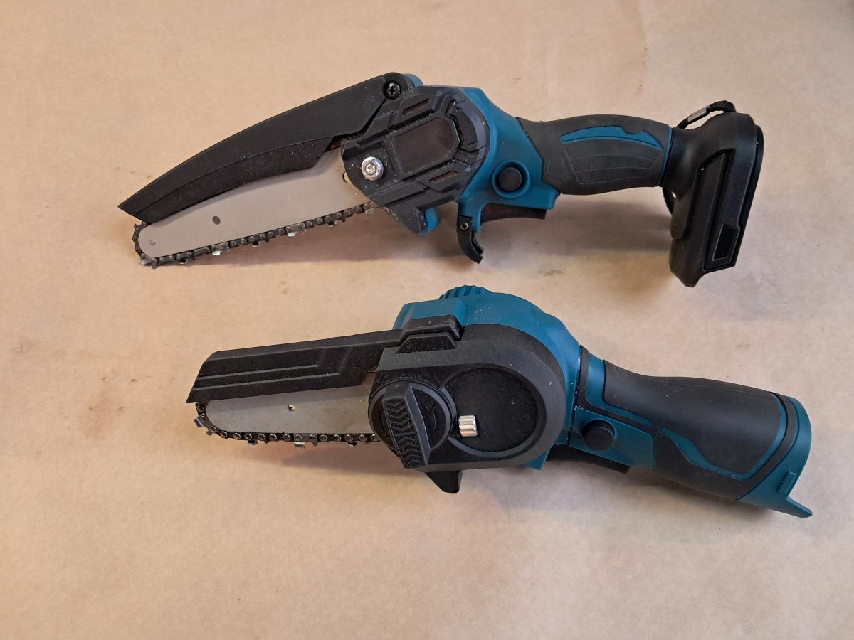 Mini chainsaws like the ones pictured are becoming very popular. Like all chainsaws, they need regular sharpening and maintenance to keep them working safely and efficiently — something I can take care of for you.