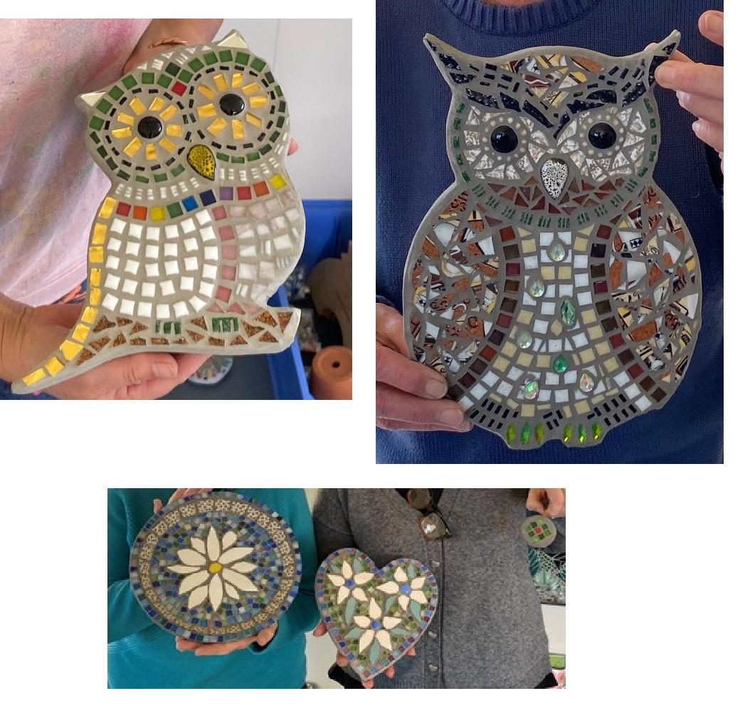 Grout is separate as this can be done at home (small quantities of grout are available to purchase through LORO Mosaics). Alternatively I can grout your piece for you for a small fee + cost of grout used. Take a scroll through the Class Gallery for beautiful examples of what is possible with just a little bit of help and guidance.