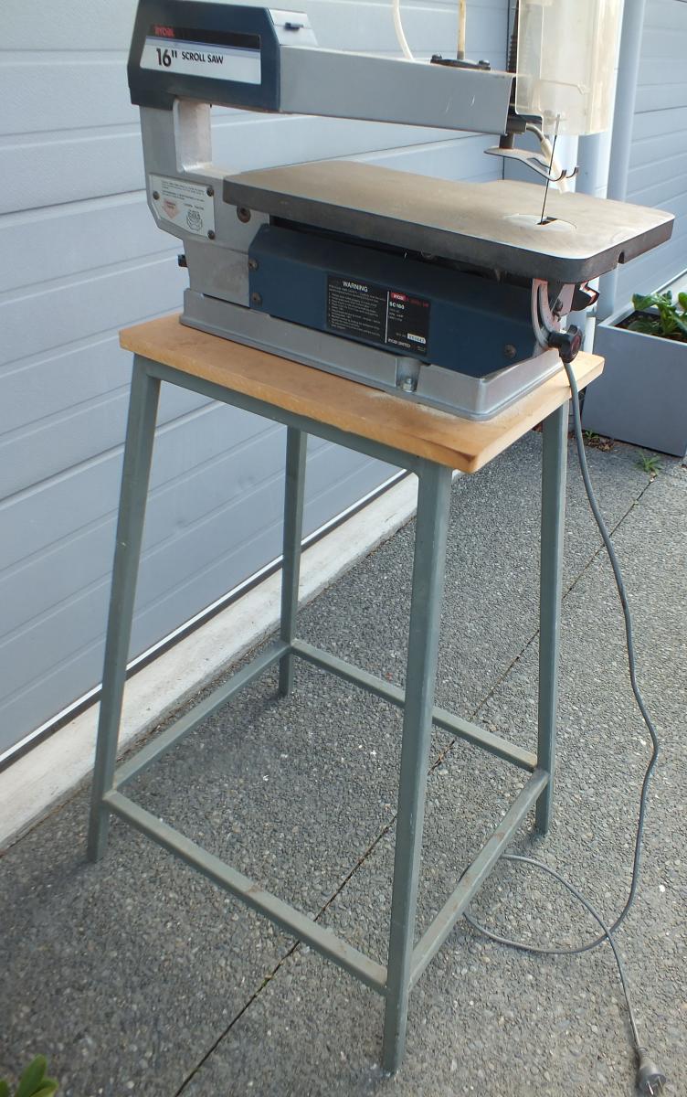 16 INCH RYOBI SCROLL SAW FOR SALE, ONLY $100, It is mounted on a purpose made steel stand. PICKUP IS IN RANGIORA.