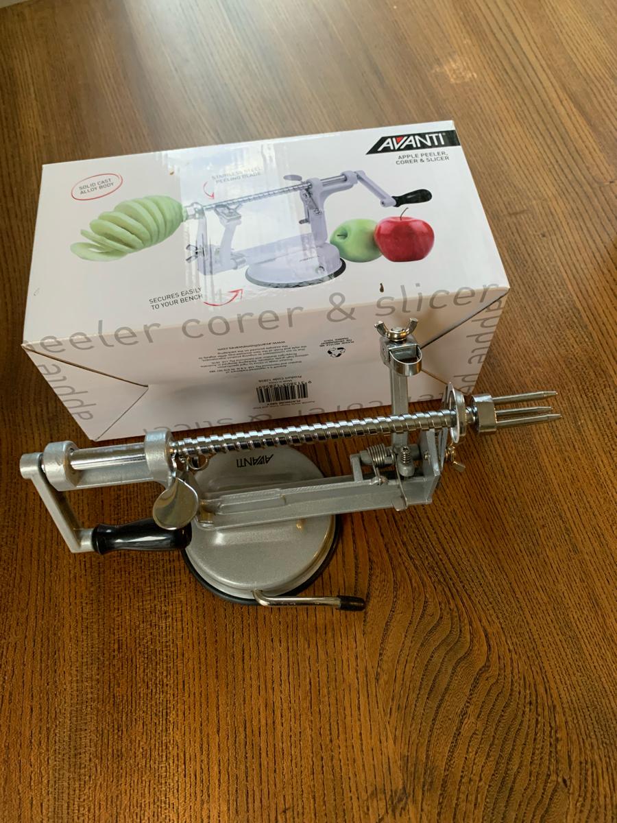 Avanti Apple Peeler, Corer and Slicer - ideal for preparing apples for the hydrator, or for peeling other fruits and vegetables such as pears or potatoes. Makes precise 5mm thick slices for pies, snacks, and salads. Original price $40, buy now for $20.