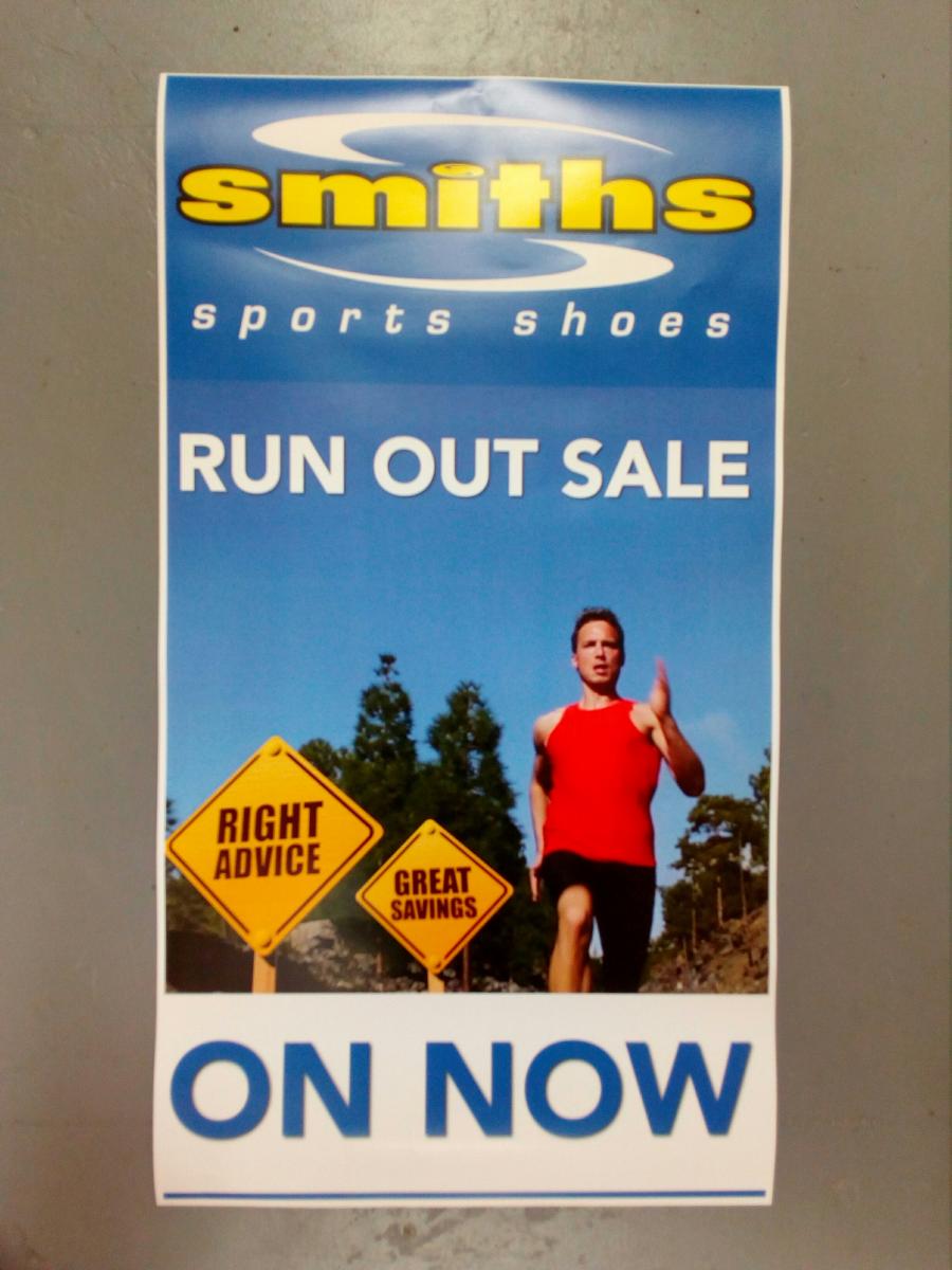 Smiths Sports Shoes massive Run Out Sale now on! Hundreds of pairs reduced for a limited time only.. Asics, New Balance, Mizuno, Adidas, Nike, Hi - Tec, Salomon all on sale now. Check us out at 1293 Tutanekai St, opposite the Meat Shoppe.
