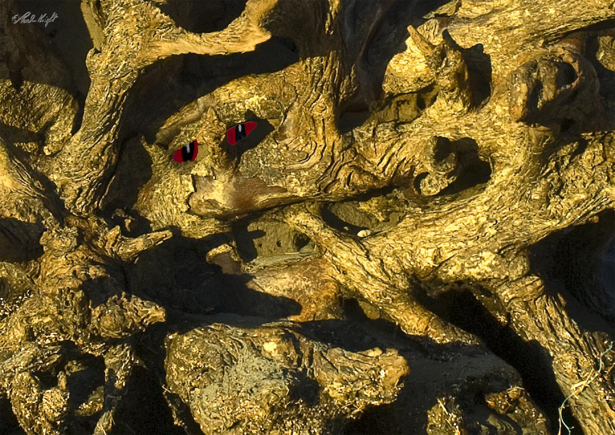 And 2 more faces in the Hokio driftwood. I didn't play any games with the face of the spy. It was exactly as photographed, whereas the eyes were borrowed from my cat.