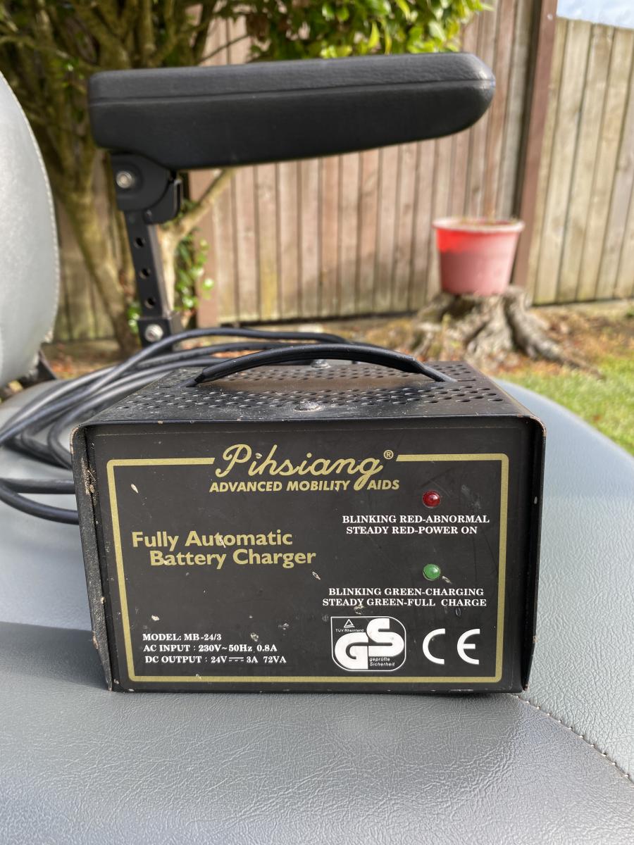 High back swivel seat with folding armrests, good tyres & batteries, charger, twin mirrors, it goes very well.