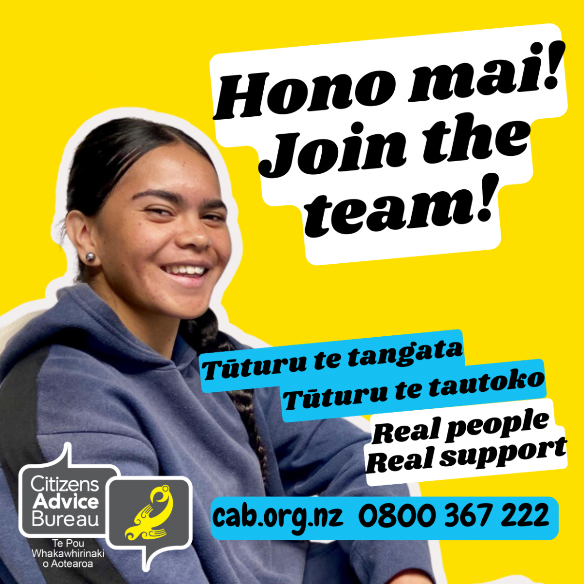 If you need support and don’t know who to ask, or if you would like to give back to the community through volunteering with an organisation whose mahi assists people individually and also benefits the wider community, CAB could be the place for you.