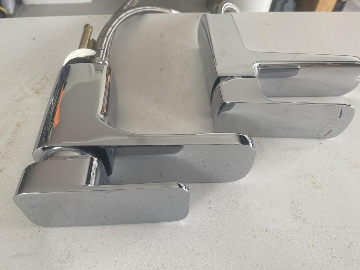 2 chrome taps. Slight pitting on the handles