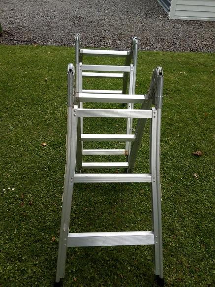 Butler multifold stepladder, 4 spans each 1m high, 100kg weight approved. Ratchet levers lock spans into chosen position. Can be used flat as a regular ladder, with one span folded towards supporting wall to reach overhanging roofs etc, bifold as a stepladder, or tripled folded (as shown) to … View moreButler multifold stepladder, 4 spans each 1m high, 100kg weight approved. Ratchet levers lock spans into chosen position. Can be used flat as a regular ladder, with one span folded towards supporting wall to reach overhanging roofs etc, bifold as a stepladder, or tripled folded (as shown) to support a trestle. Sturdy and in good condition. Free delivery in Tauranga area. Call Paul on 021 106 5088.