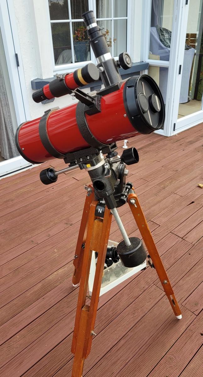 Astronomical Telescope on equatorial mount and tripod. Tasco brand Newtonian reflector with 125mm diameter mirror. Calibrated equatorial mount with hand controls allows observer to follow planets and stars across the sky as the earth turns. Comes with eyepieces and instruction book. Excellent … View moreAstronomical Telescope on equatorial mount and tripod. Tasco brand Newtonian reflector with 125mm diameter mirror. Calibrated equatorial mount with hand controls allows observer to follow planets and stars across the sky as the earth turns. Comes with eyepieces and instruction book. Excellent condition. Free delivery in Tauranga area. Call 021 106 5088.